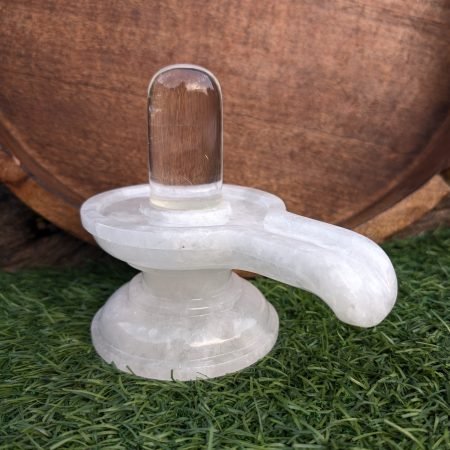 Crystal Lingam on White Quartz Stone Base – 5″ Crystal Shivling