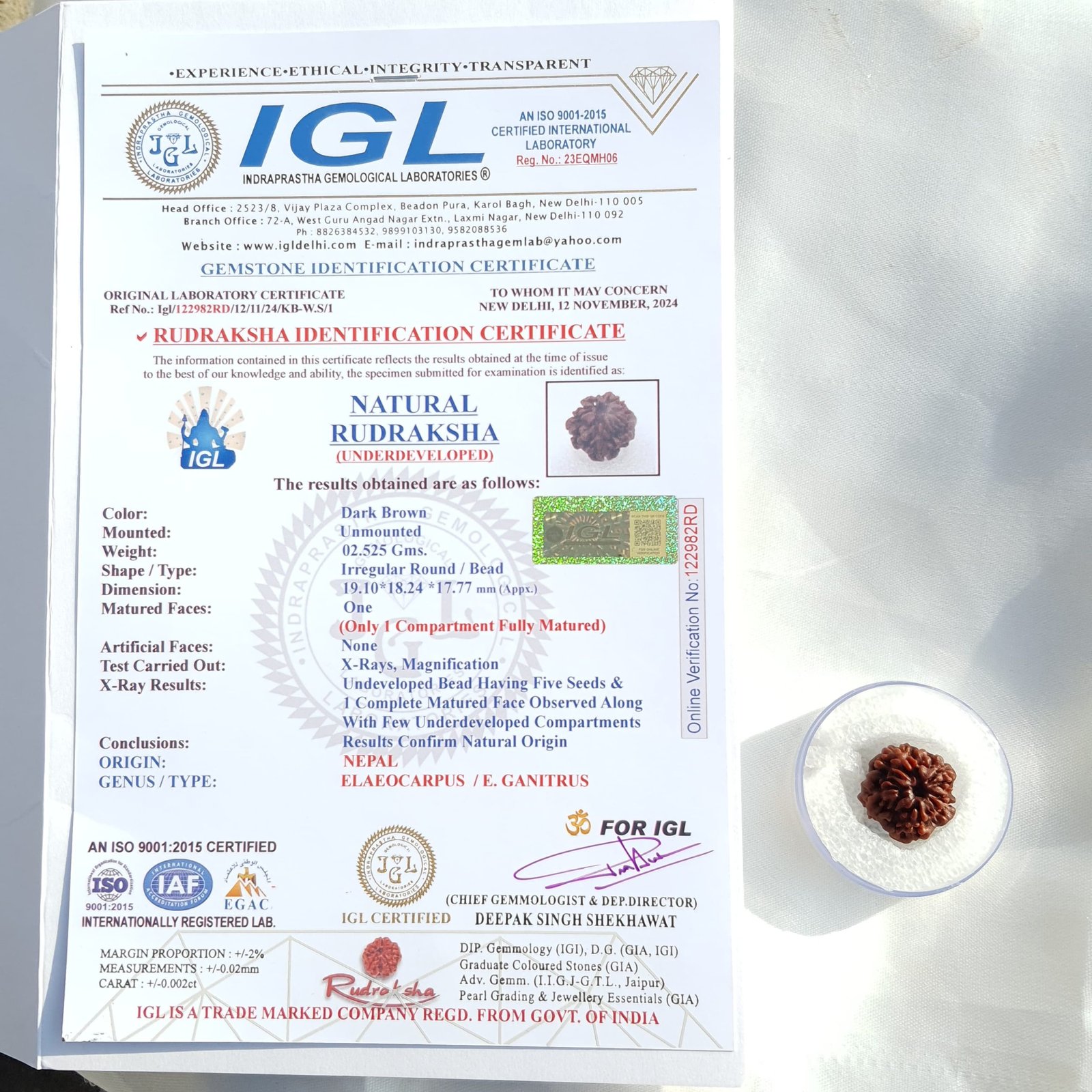 • Certification: IGL – Indraprastha Gemological Laboratories