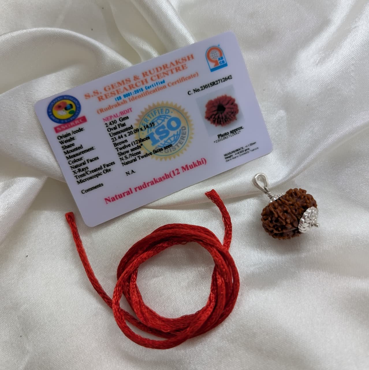 12 Mukhi Rudraksha 925 Silver Pendant – Lab Certified Nepali Bead