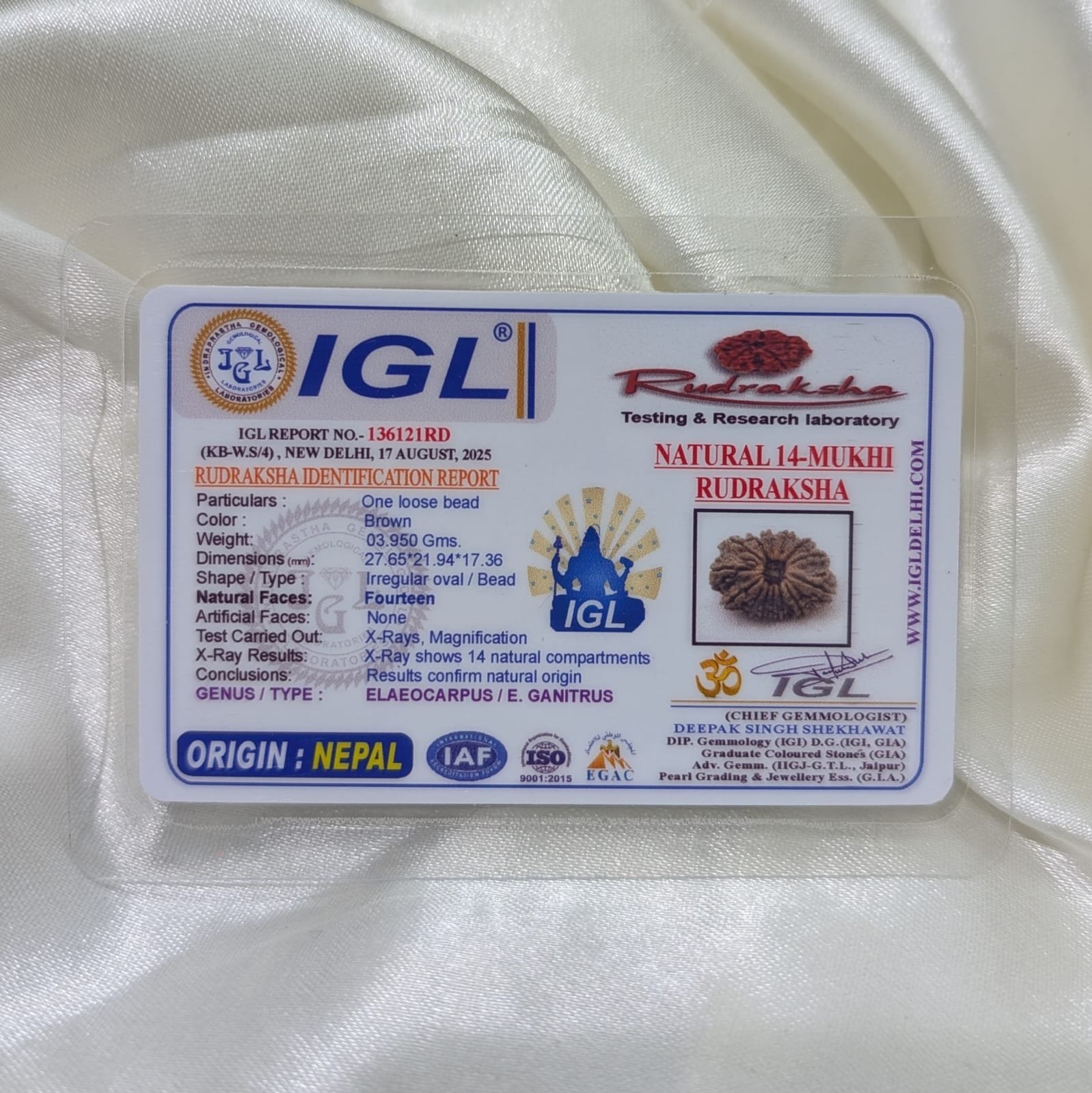 14 Mukhi Rudraksha – 14 Face Bead (27mm) with IGL Certificate & X-ray