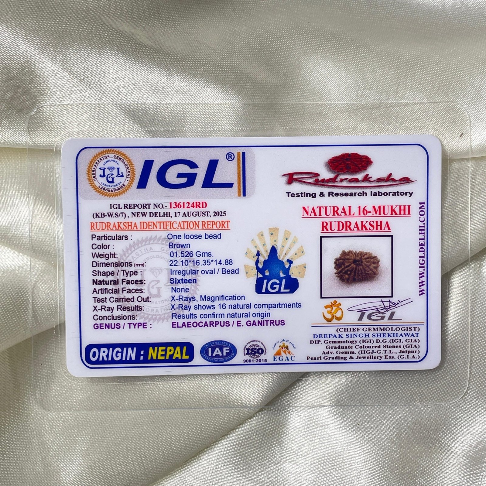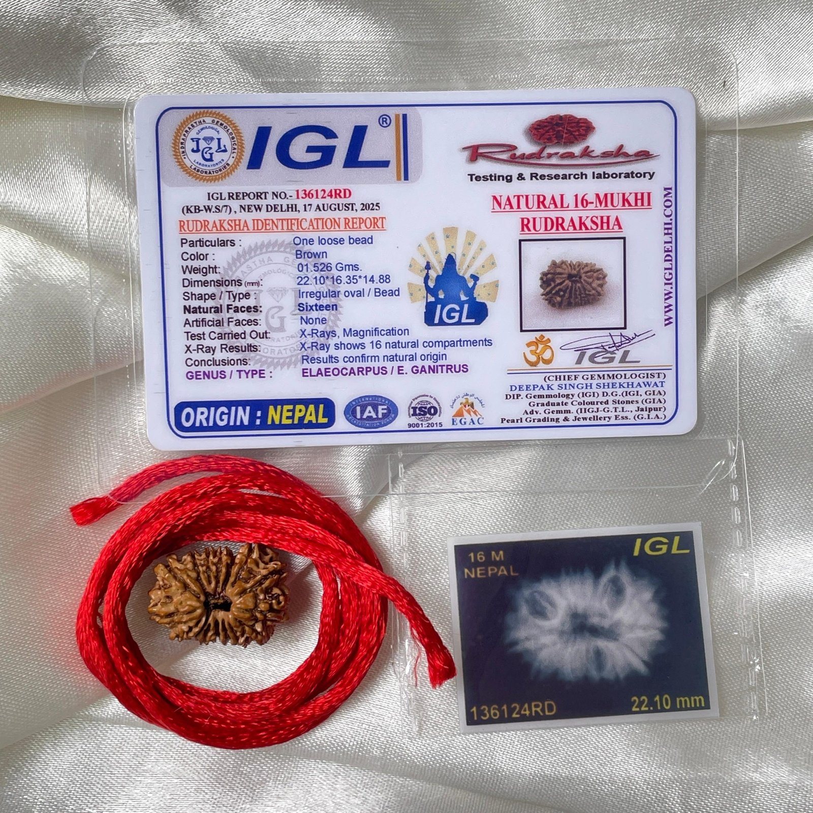 16 Mukhi Nepali Rudraksha Pendant – IGL Certified (22mm), with X-ray