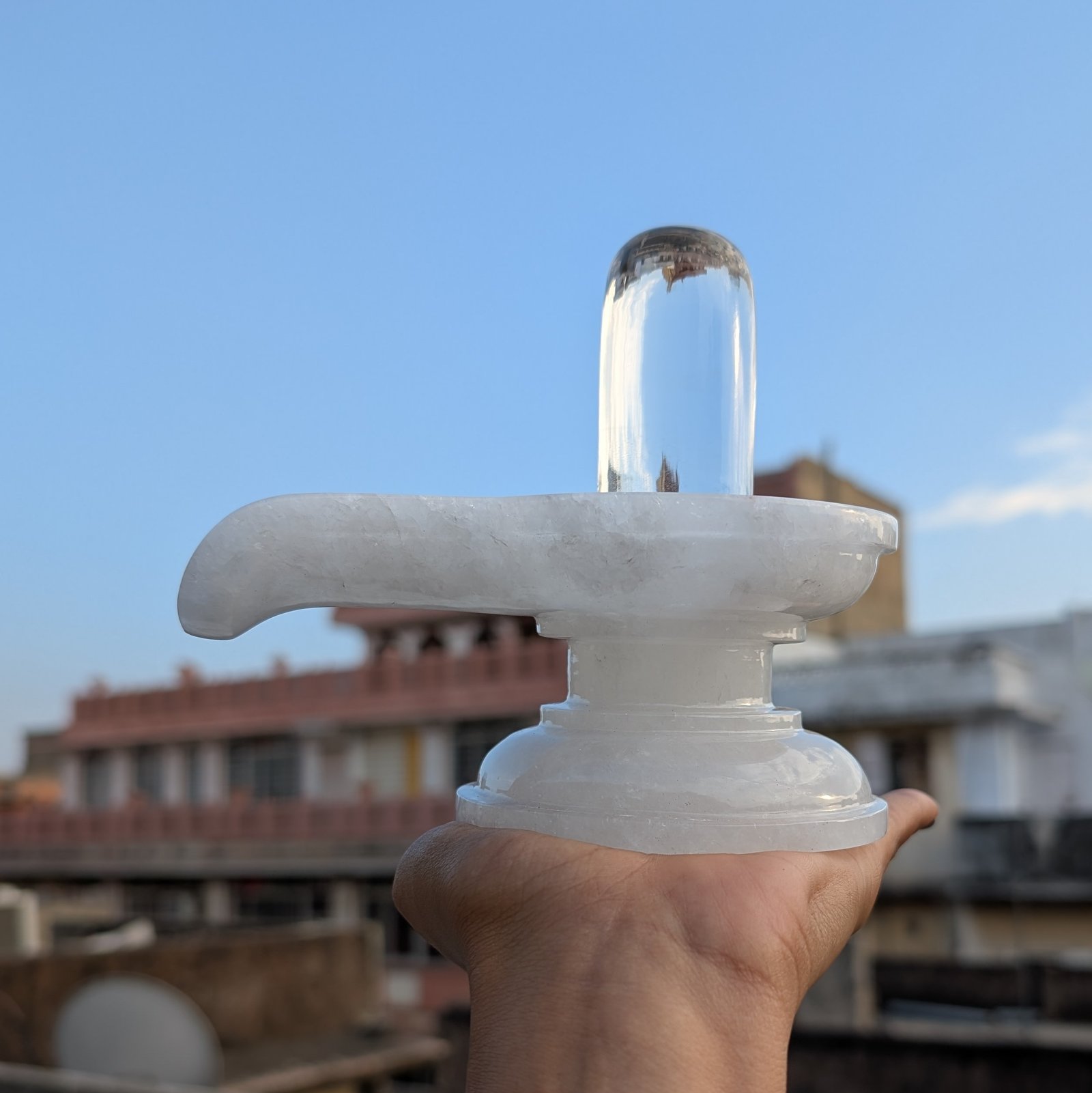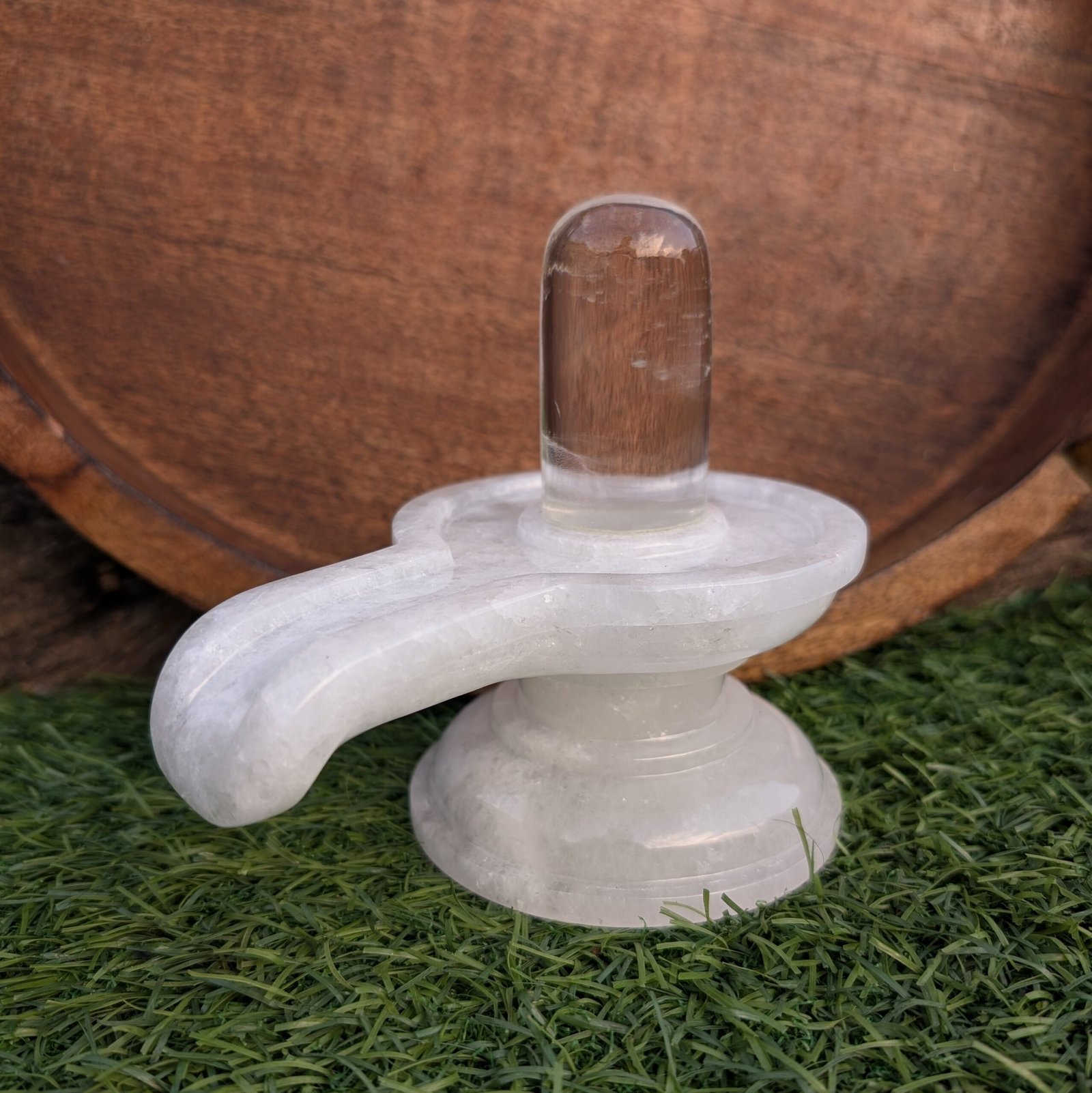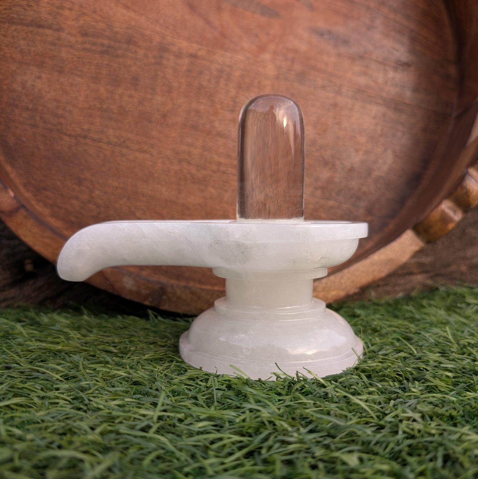 Invite divine blessings into your sacred space with this exquisite hand-carved Crystal Lingam, gracefully placed on a pure White Quartz Stone Base. A powerful symbol of Lord Shiva, this spiritual masterpiece is perfect for pooja rooms, meditation spaces, temples, and energy healing rituals.