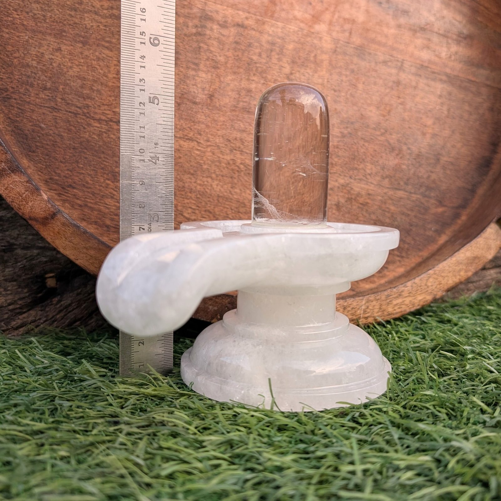 5″ Crystal Lingam on White Quartz Stone Base – Sacred Energy for Pooja & Meditation