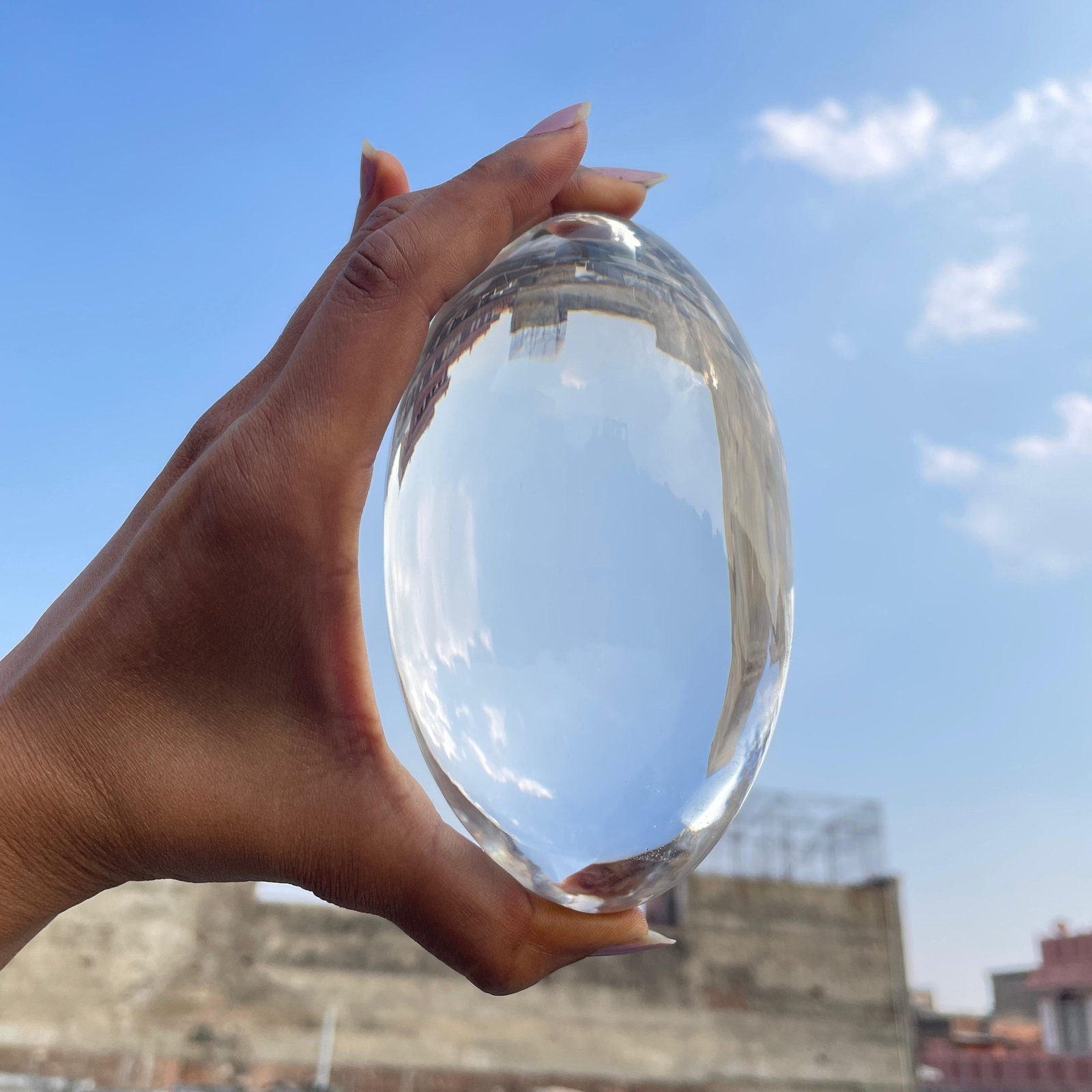 Introducing our Original Sphatik Lingam, a magnificent 5″-inches Rock Crystal (Sphatik) Lingam, crafted from a single piece of 90% clean natural crystal. This premium-quality Lingam radiates purity and divine energy, making it ideal for worship, meditation, and Vastu purposes.