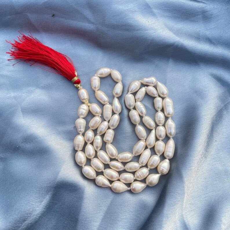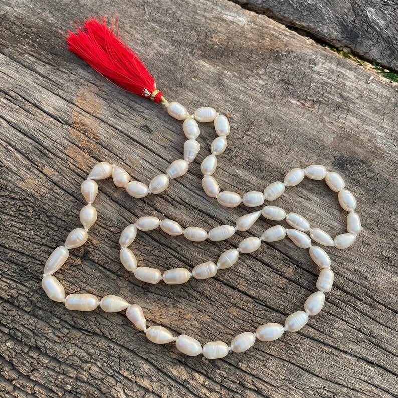 This elegant Natural Freshwater Pearl Mala is beautifully handcrafted with lustrous white pearls, finished with a traditional red tassel. Pearls are known for their calming and soothing energy, making this mala perfect for meditation, spiritual practices, or graceful everyday wear. Its timeless beauty also makes it a thoughtful and auspicious gift.