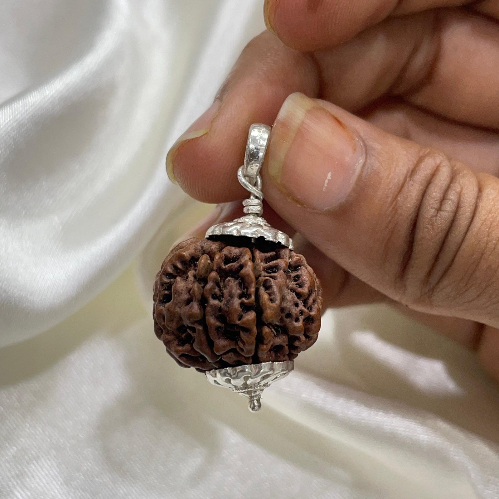 7 Mukhi Rudraksha Silver Pendant – Nepali Gem, Lab Certified