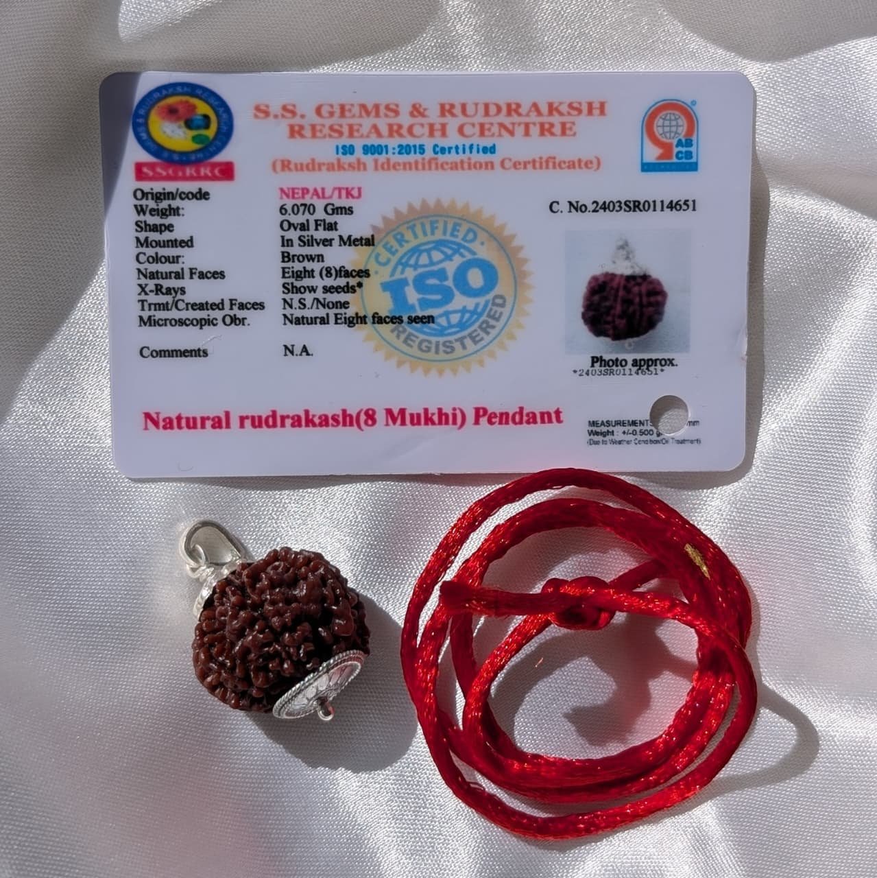 | Weight of Rudraksha | 6.070 Grams (with silver) |
