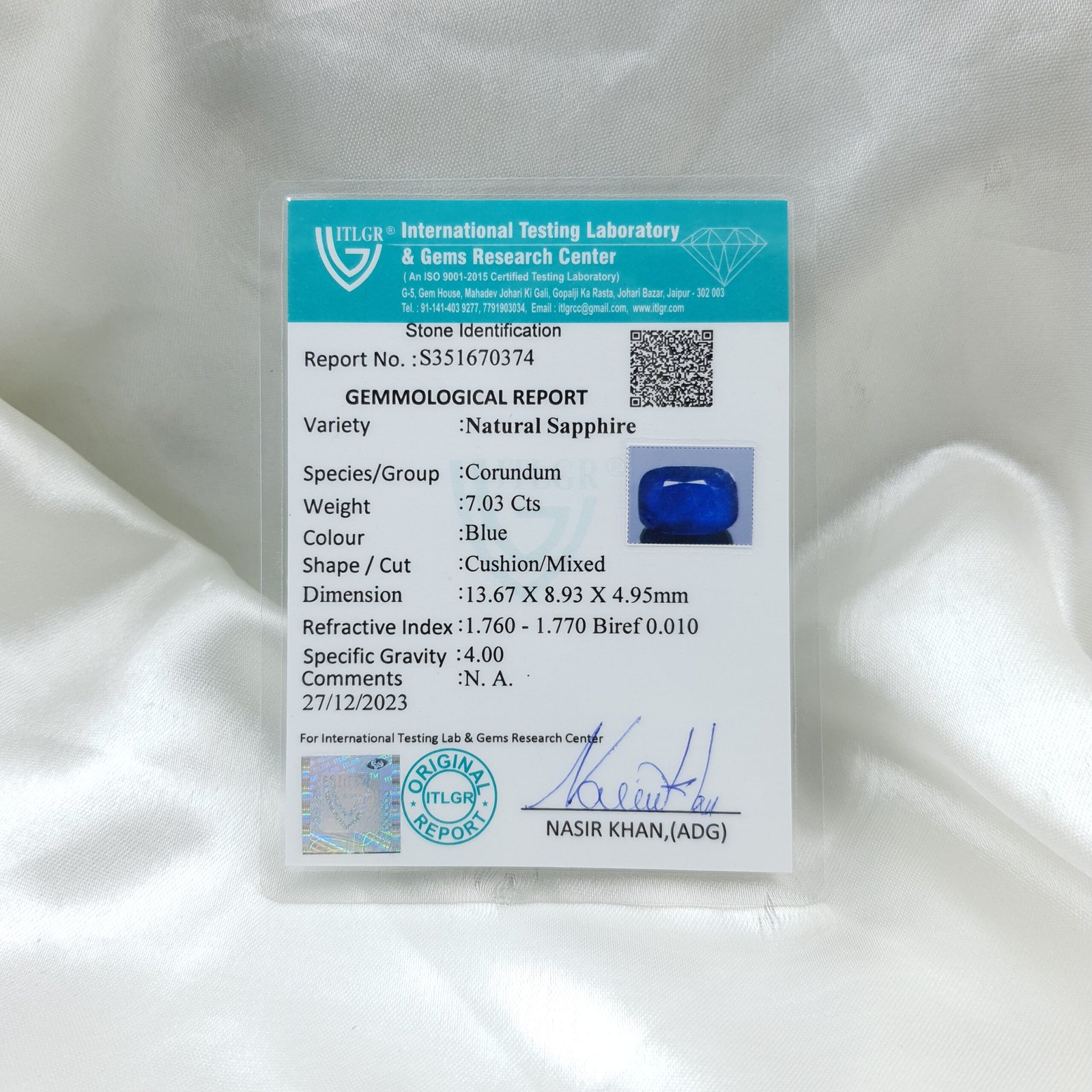 Original Blue Sapphire (Neelam) Gemstone 7.03 Carats