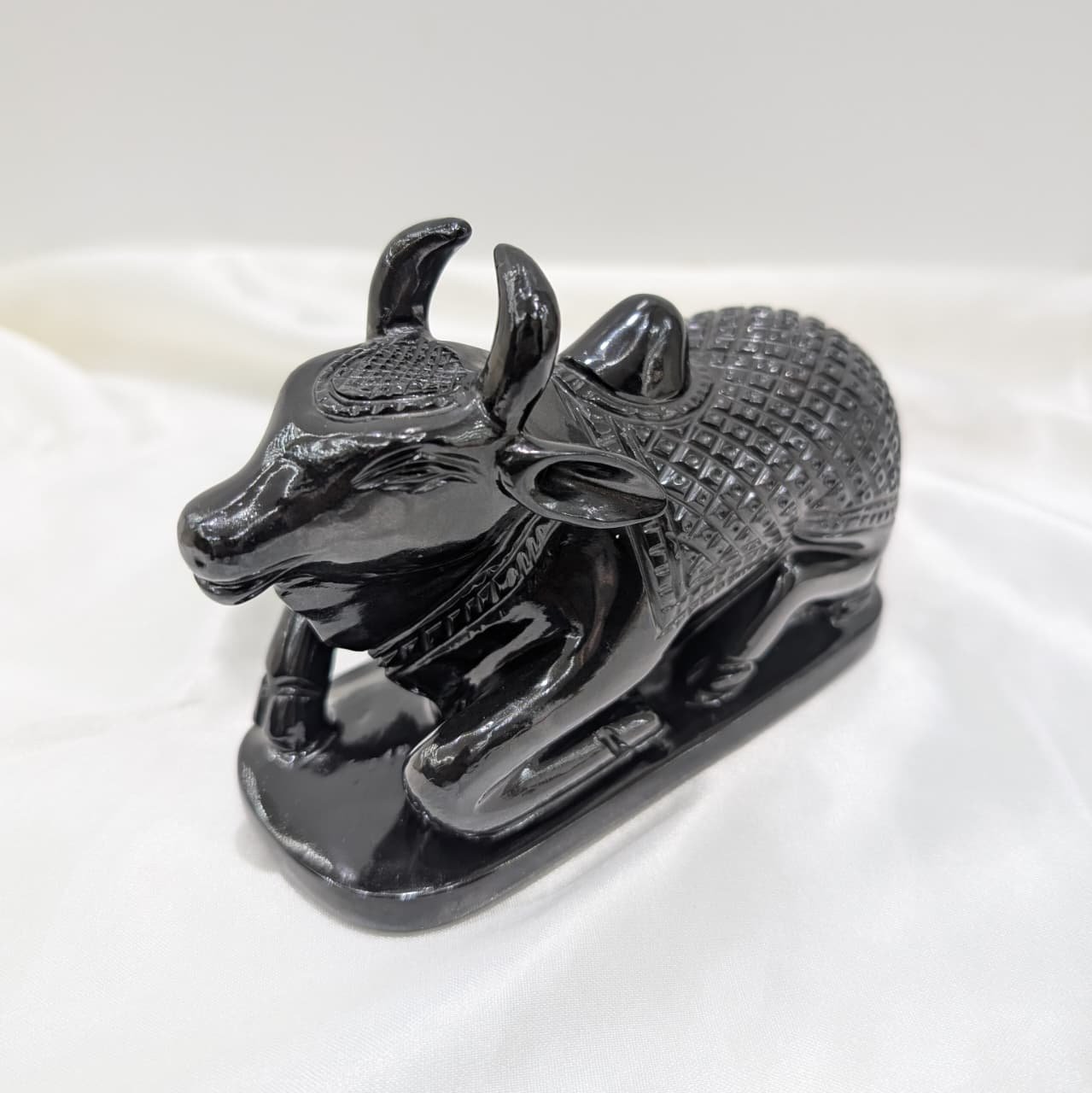 Nandi Size: 4″ height, 5.75″ length, 2.35″ width (1257 grams) – proportionate to the Shivling for a traditional setup.