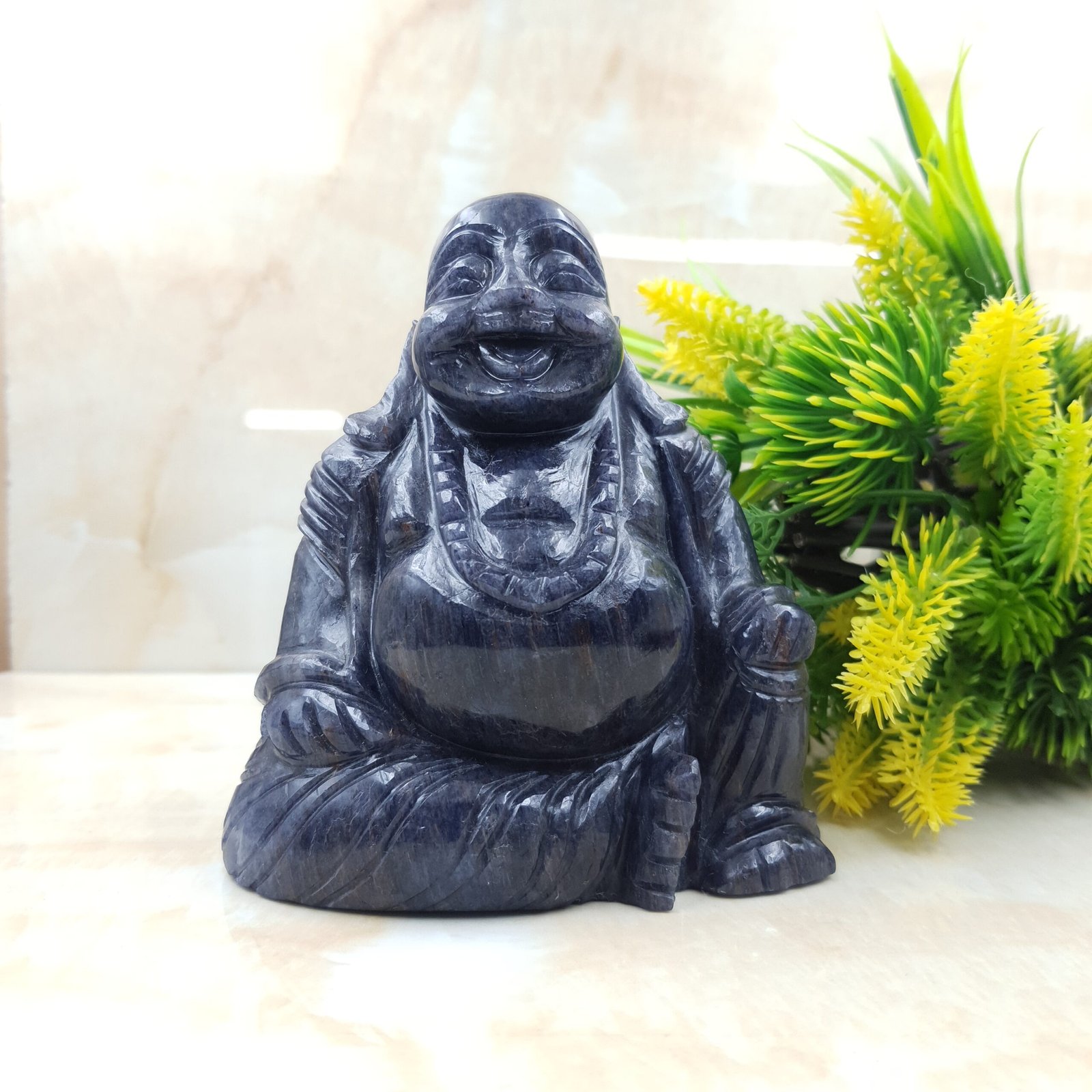 Blue Jade Laughing Buddha symbolizes happiness, abundance, and positivity. Placing it in your home or workspace is believed to attract good luck, wealth, and joyful energy. Blue jade is known for its calming properties, helping reduce stress, promote peace of mind, and support emotional balance. Linked to the throat chakra, it encourages clear, honest, and kind communication while enhancing wisdom and mental clarity. Traditionally placed facing the entrance, it balances prosperity with mindfulness. Ideal for living rooms, offices, or entryways, it also makes a meaningful gift for housewarmings, birthdays, and spiritual occasions.