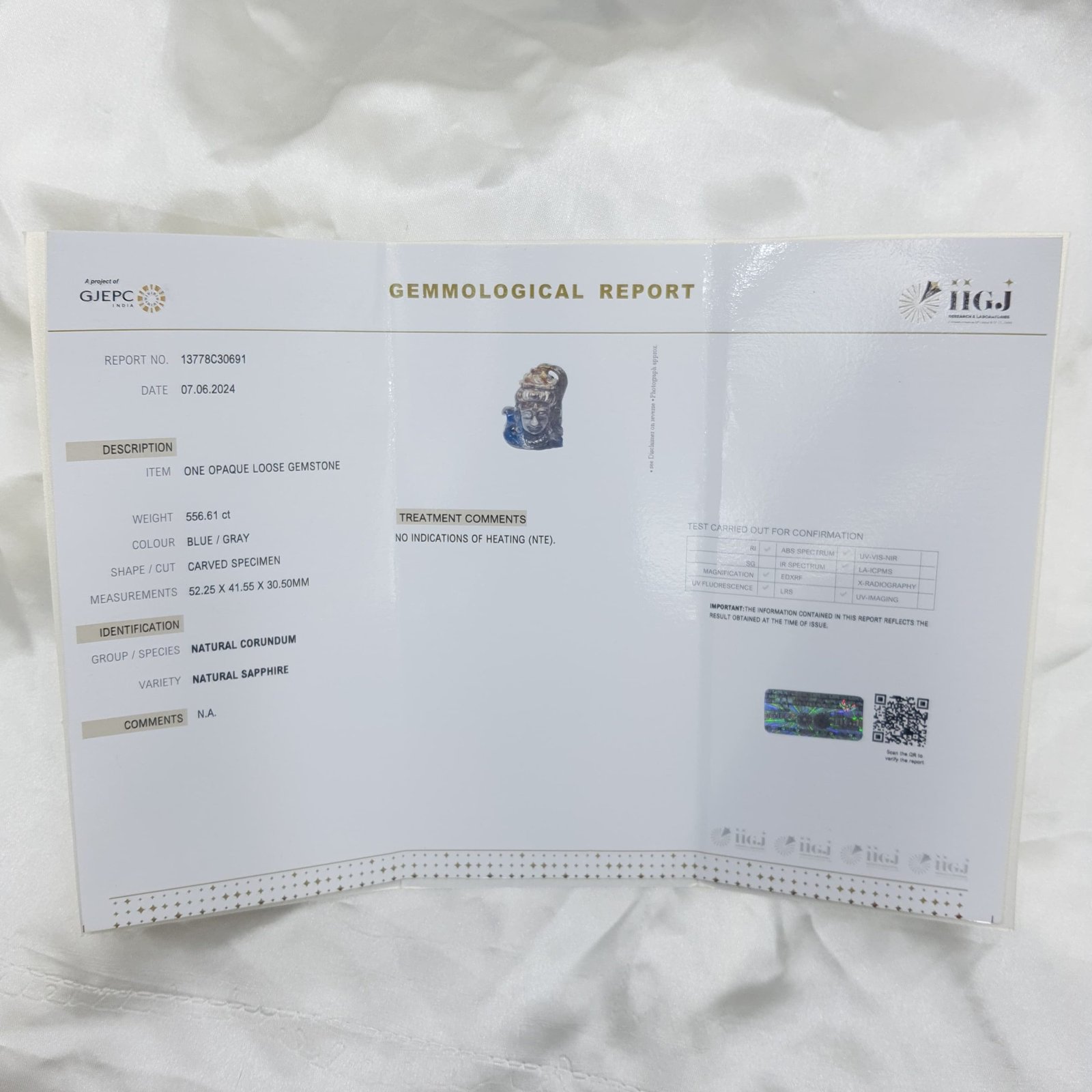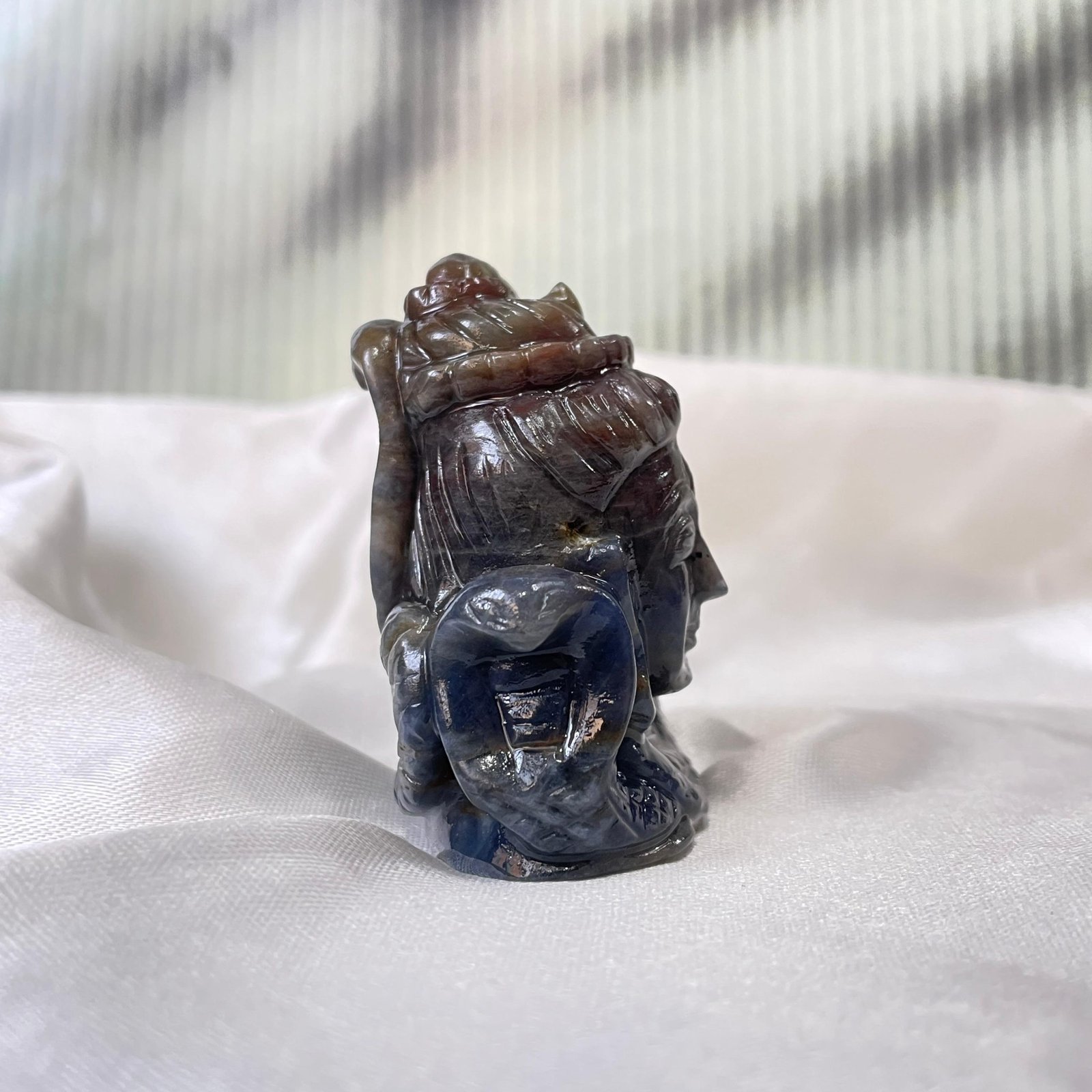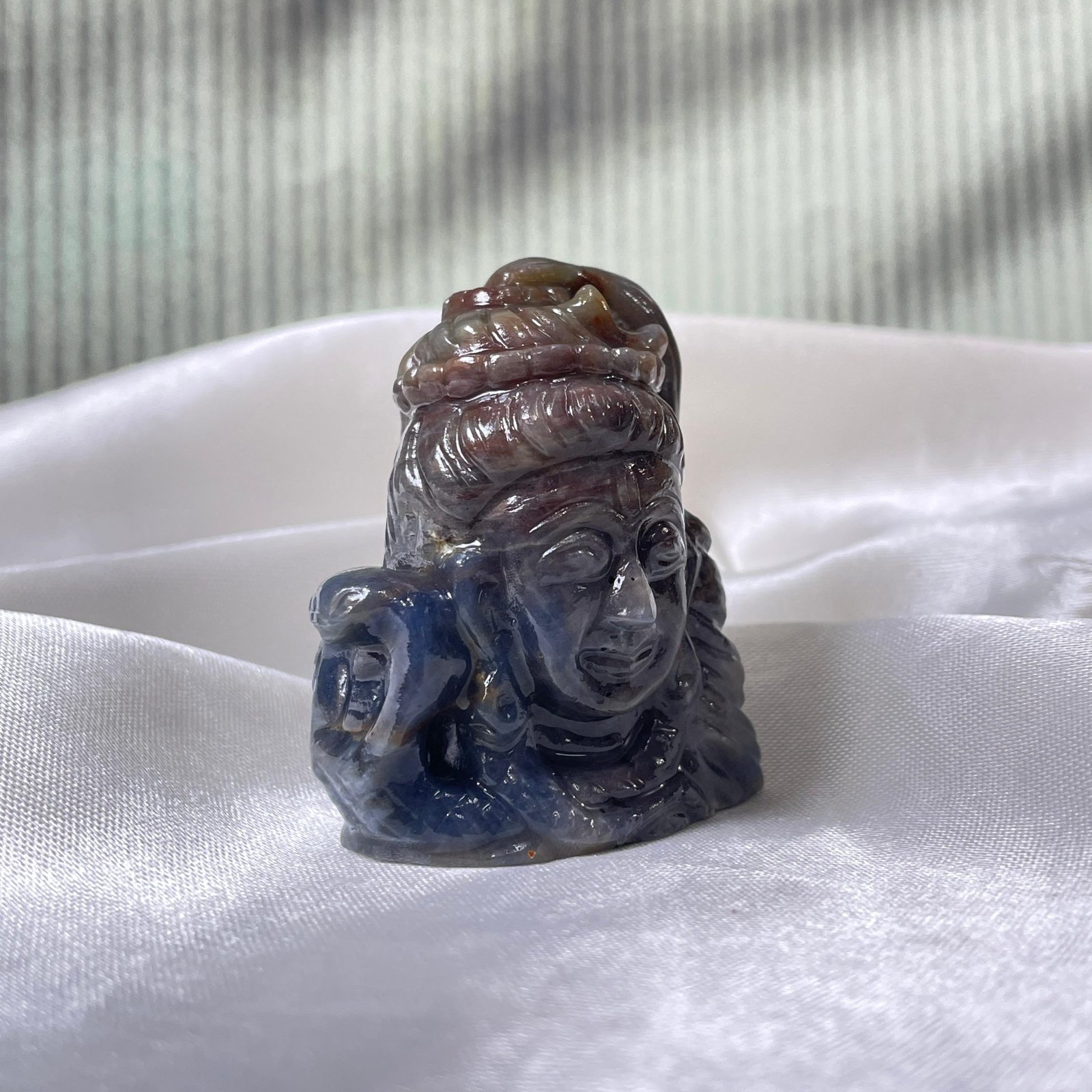 Blue Sapphire Shiva Head Statue with Lab Certified