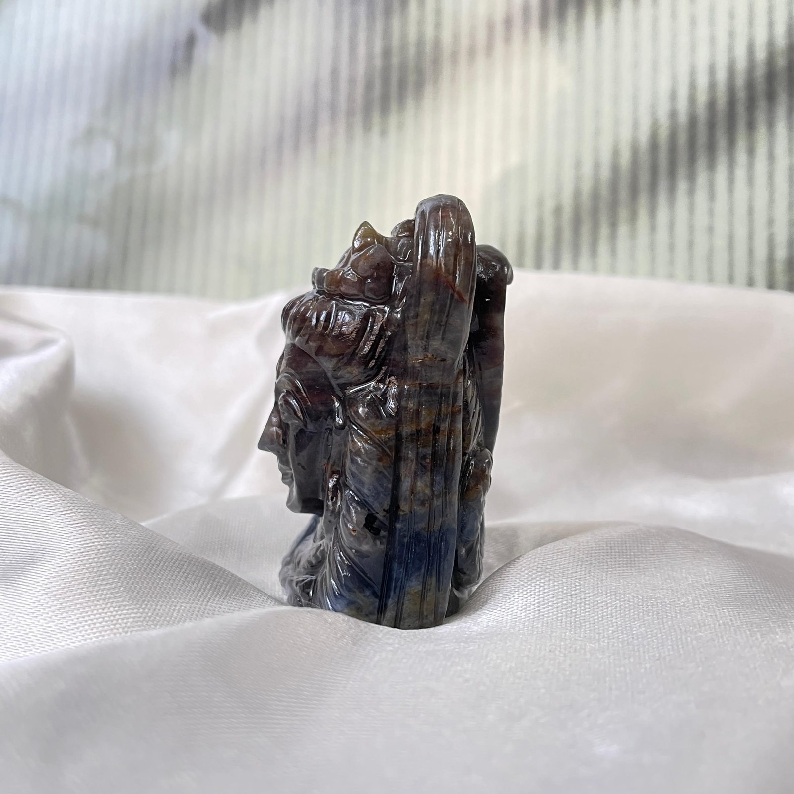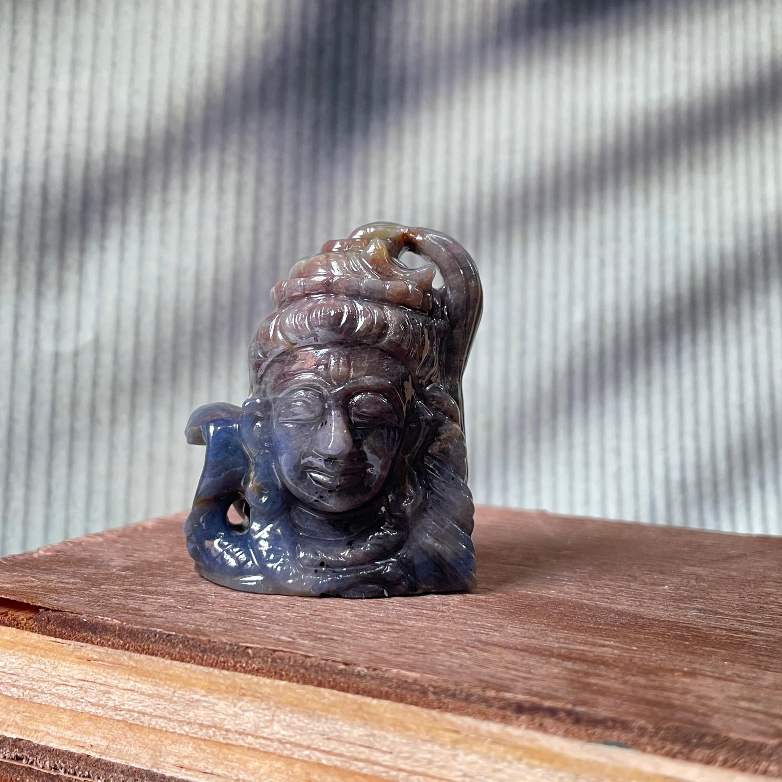 This beautifully hand-carved Blue Sapphire Shiva Head combines the divine power of Lord Shiva with the high-vibration energy of natural Blue Sapphire.