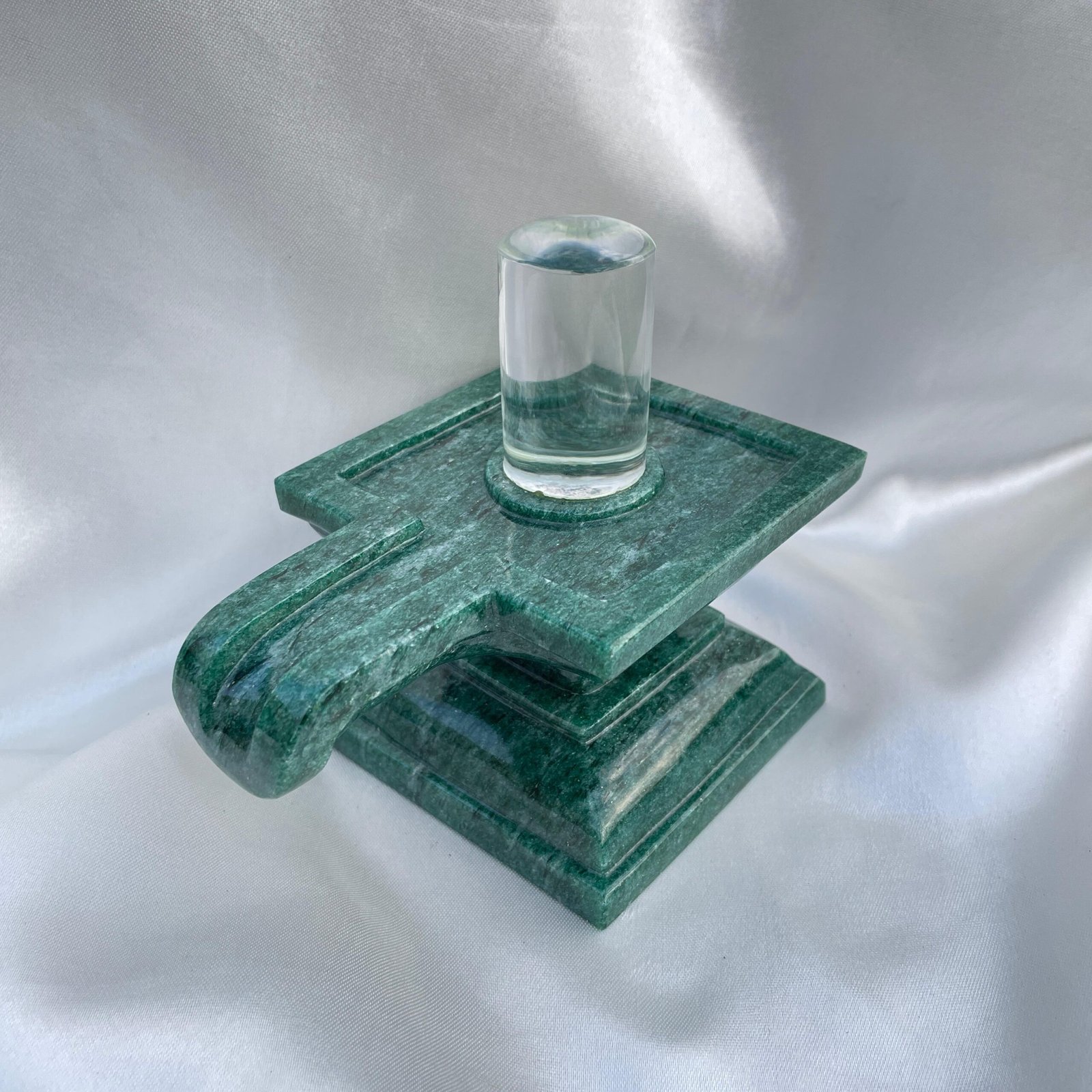 Crystal Lingam on Green Jade Base, Crystal Shivling