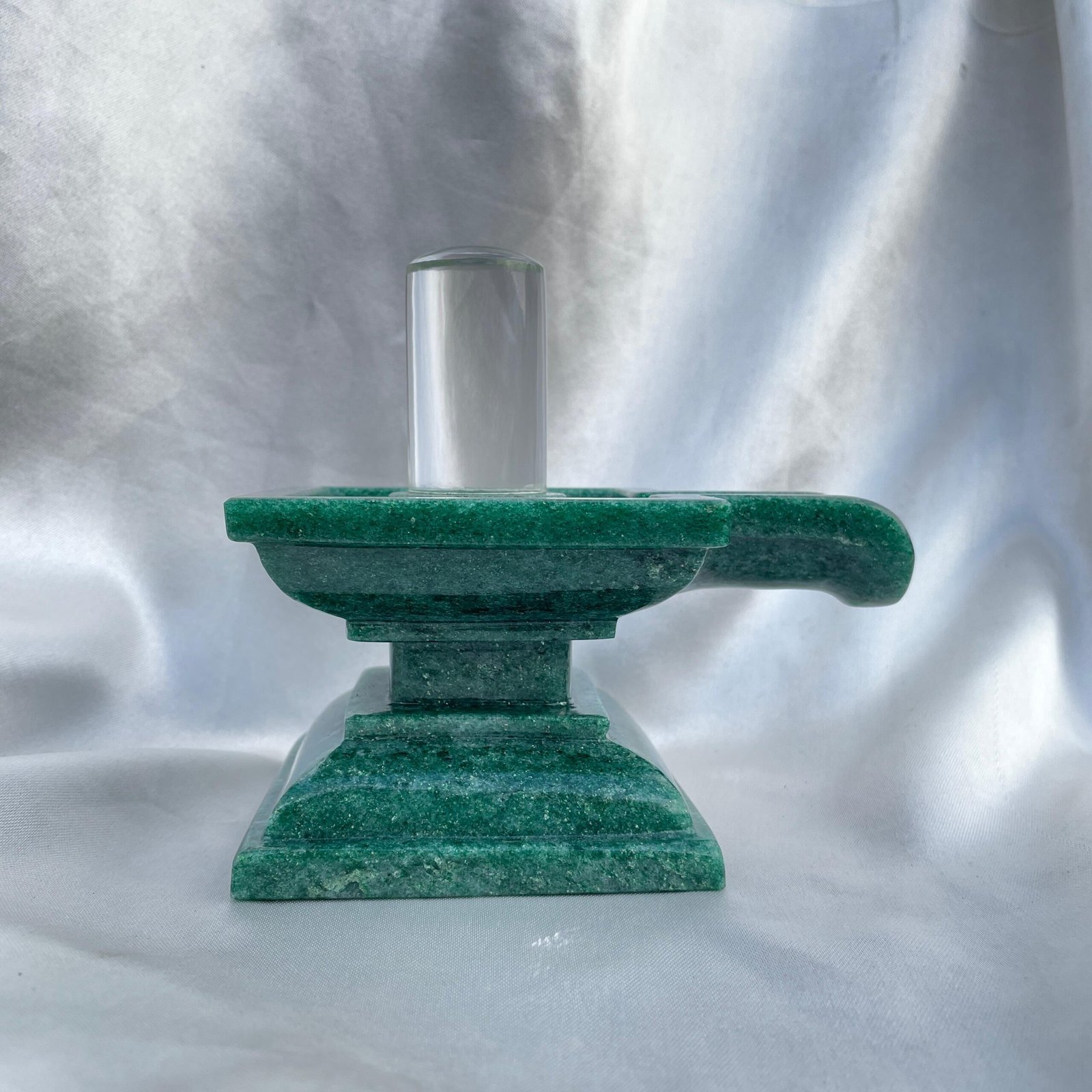 Invite divine blessings into your space with this beautifully hand-carved Crystal Lingam placed on a pure Green Jade base. A powerful symbol of Lord Shiva, it is perfect for pooja rooms, meditation, temples, and energy rituals.