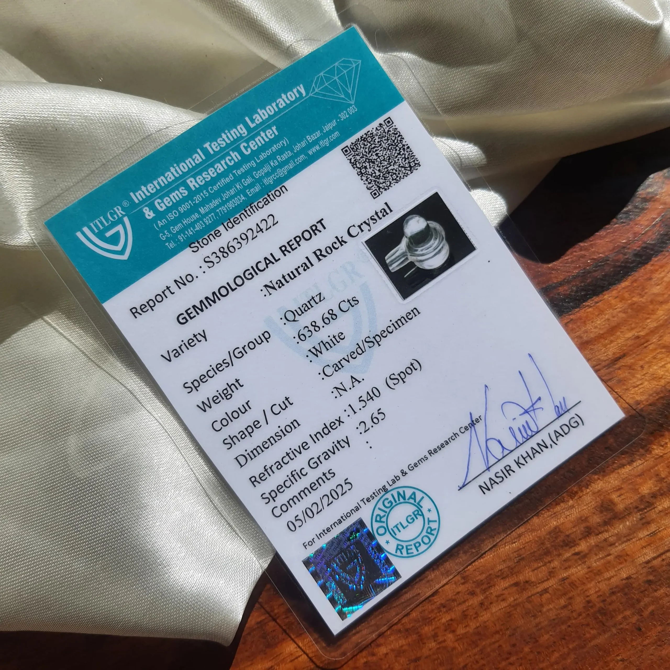 Sphatik Shivling, Crystal Shivling with Lab Certificate