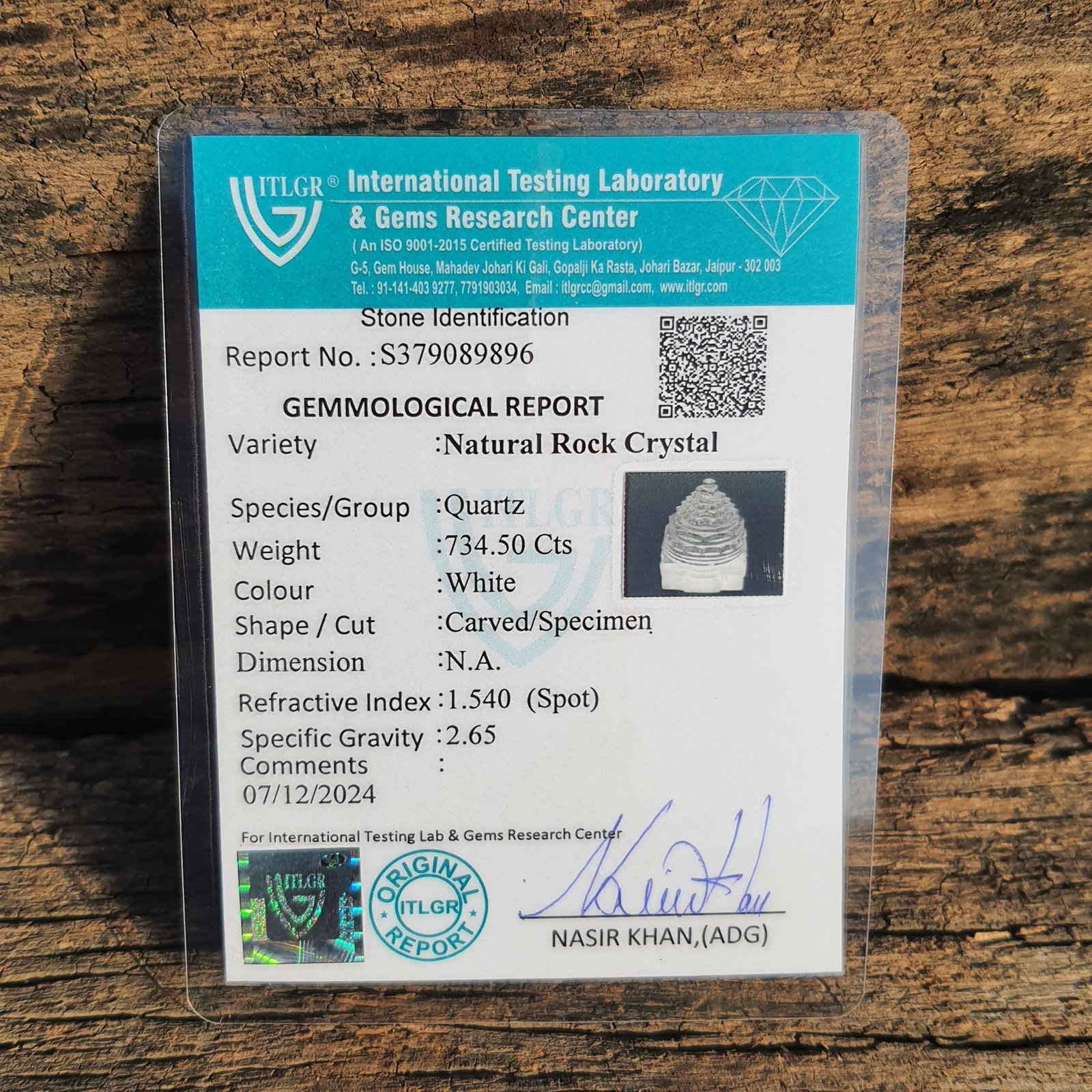 Crystal Shree Yantra, 2.45″ Carved White Sphatik Shree Yantra with ITLGR