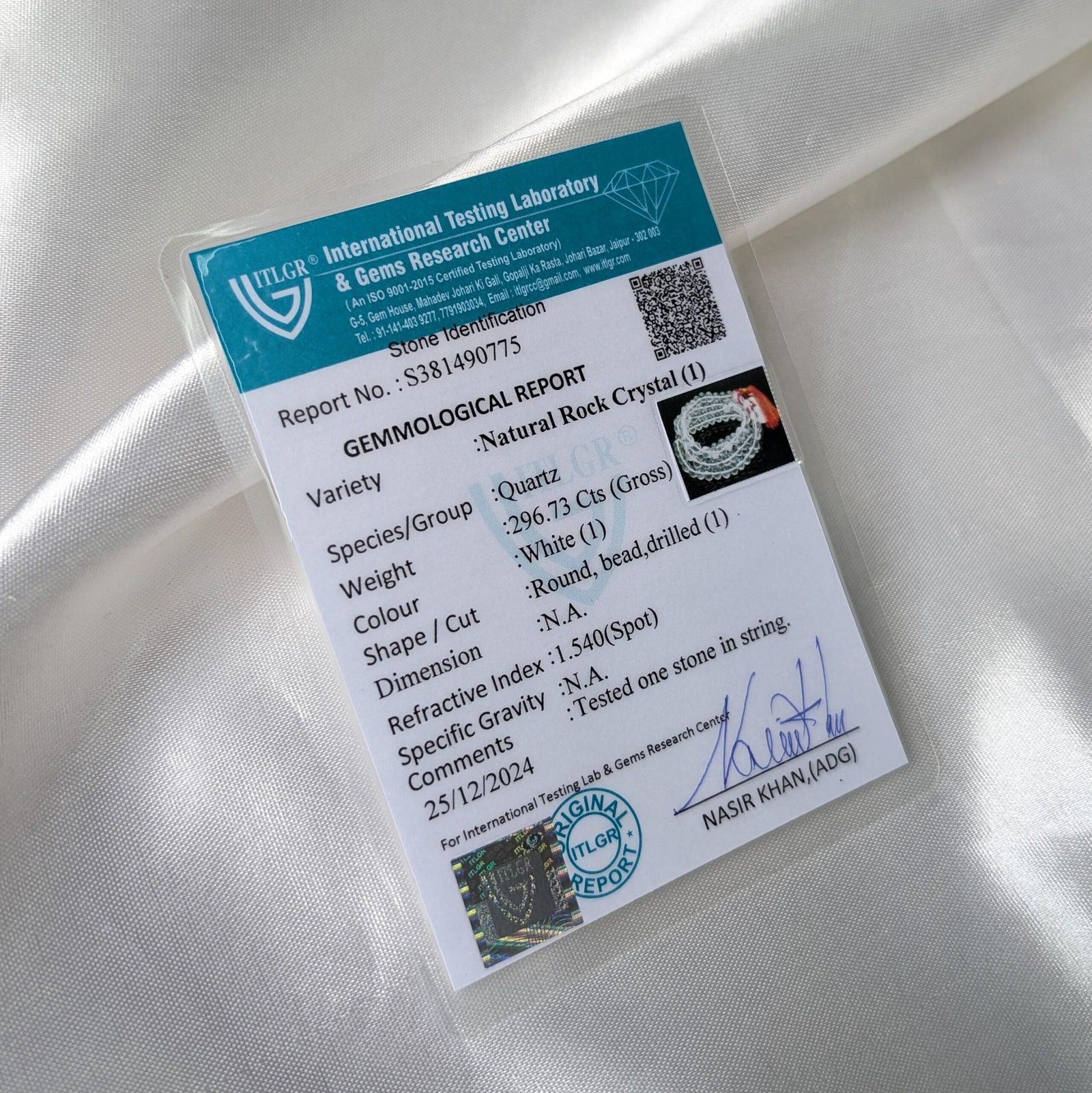 | Test | ITLGR Lab Certified for Authenticity |