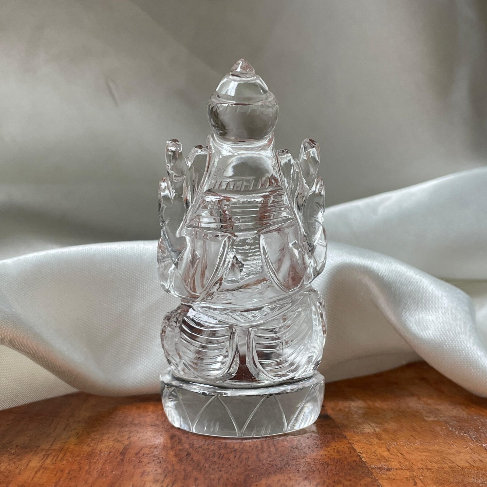 Many devotees place the Hand-Carved Crystal Ganesha Statue in their pooja room or meditation space to invite peace, prosperity, and divine protection.