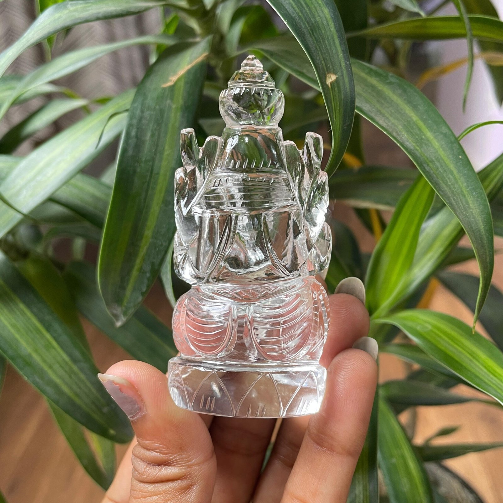 The Hand-Carved Crystal Ganesha Statue combines the spiritual blessings of Lord Ganesha with the energetic properties of natural crystal.