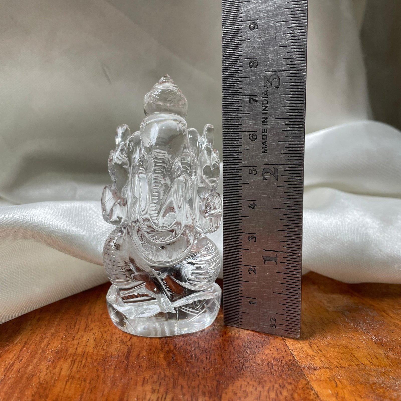 Hand-Carved Crystal Ganesha Statue – 3″ Natural Rock Crystal Idol