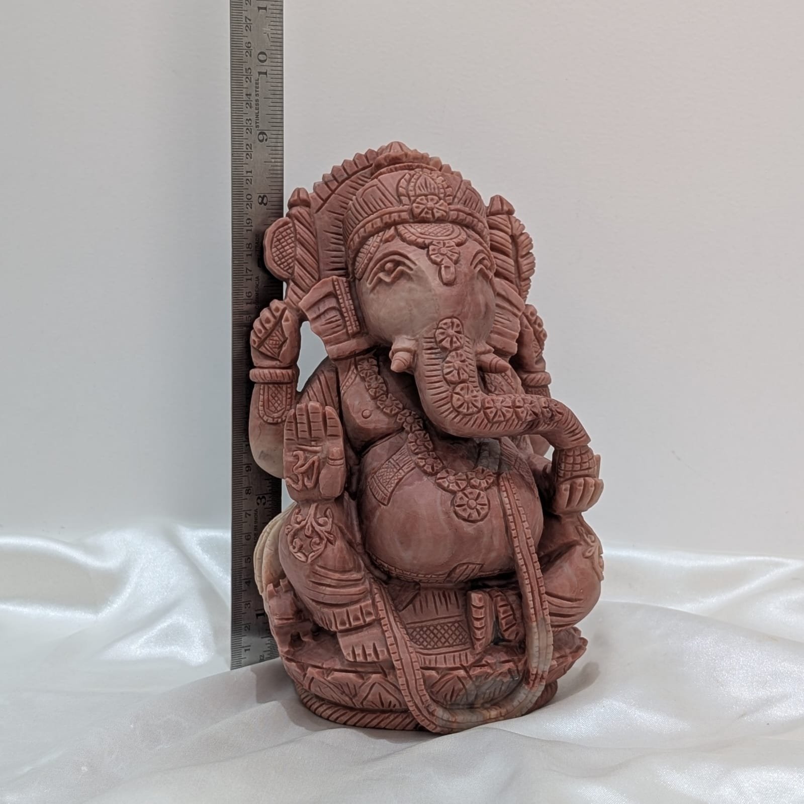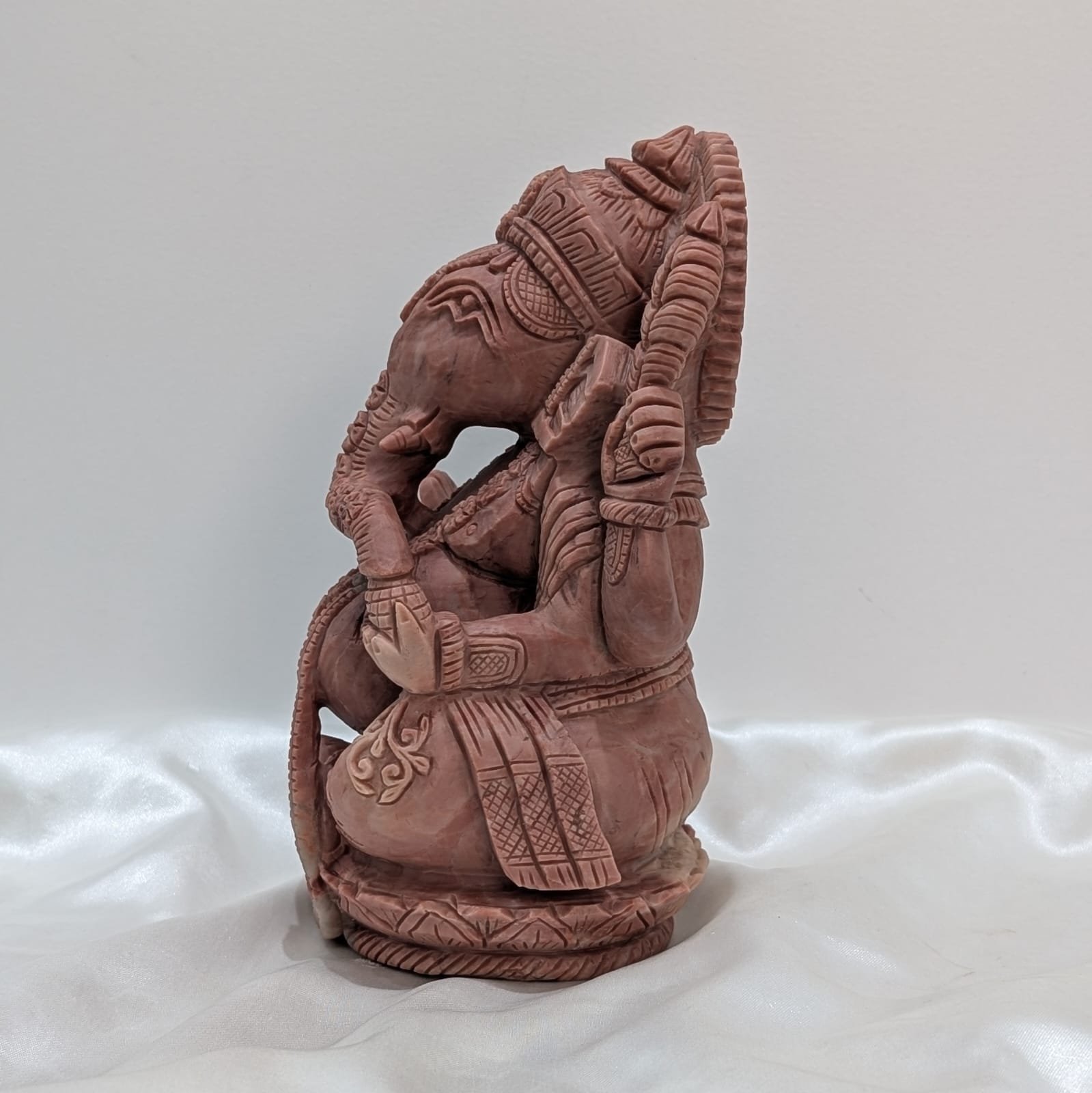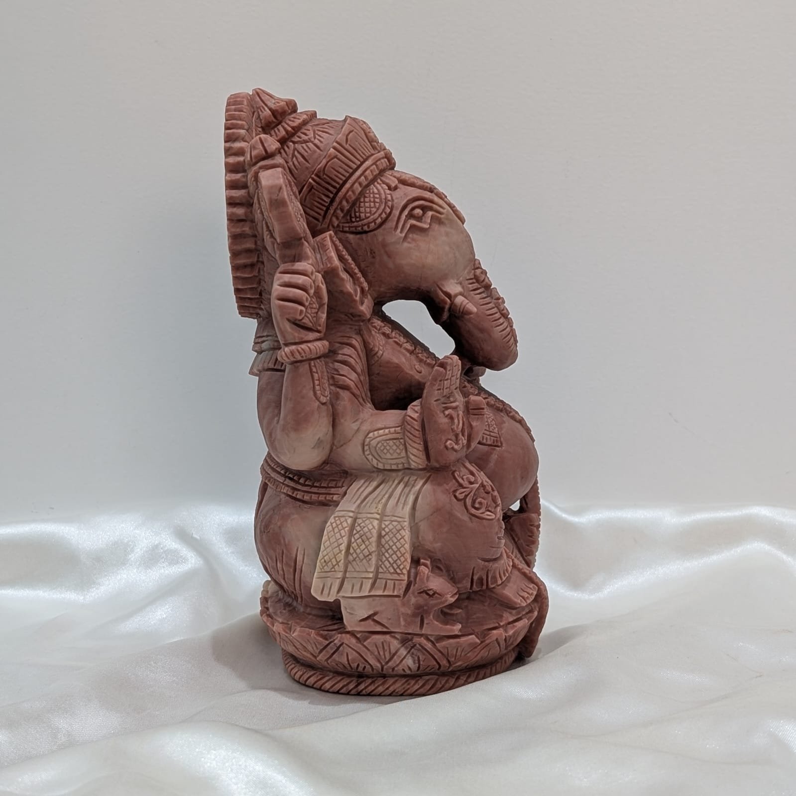 Ganesha idols are commonly placed in homes, offices, and sacred spaces as a representation of good fortune and success. A gemstone carving adds an extra level of elegance and uniqueness to the traditional form.