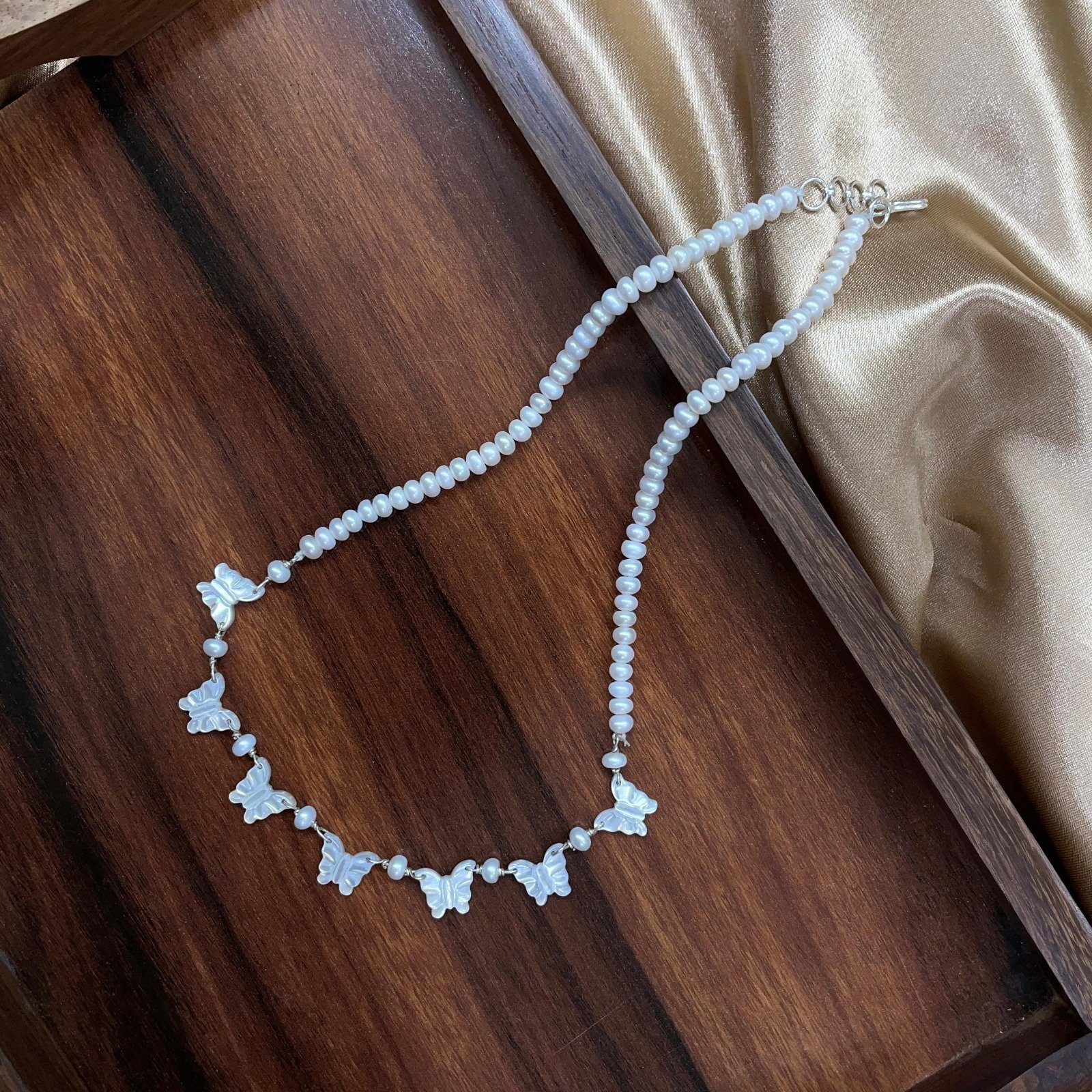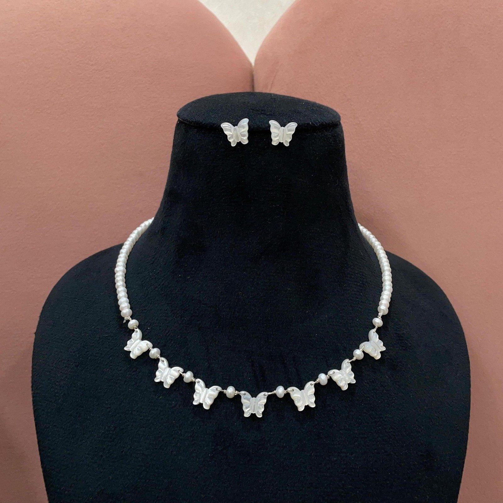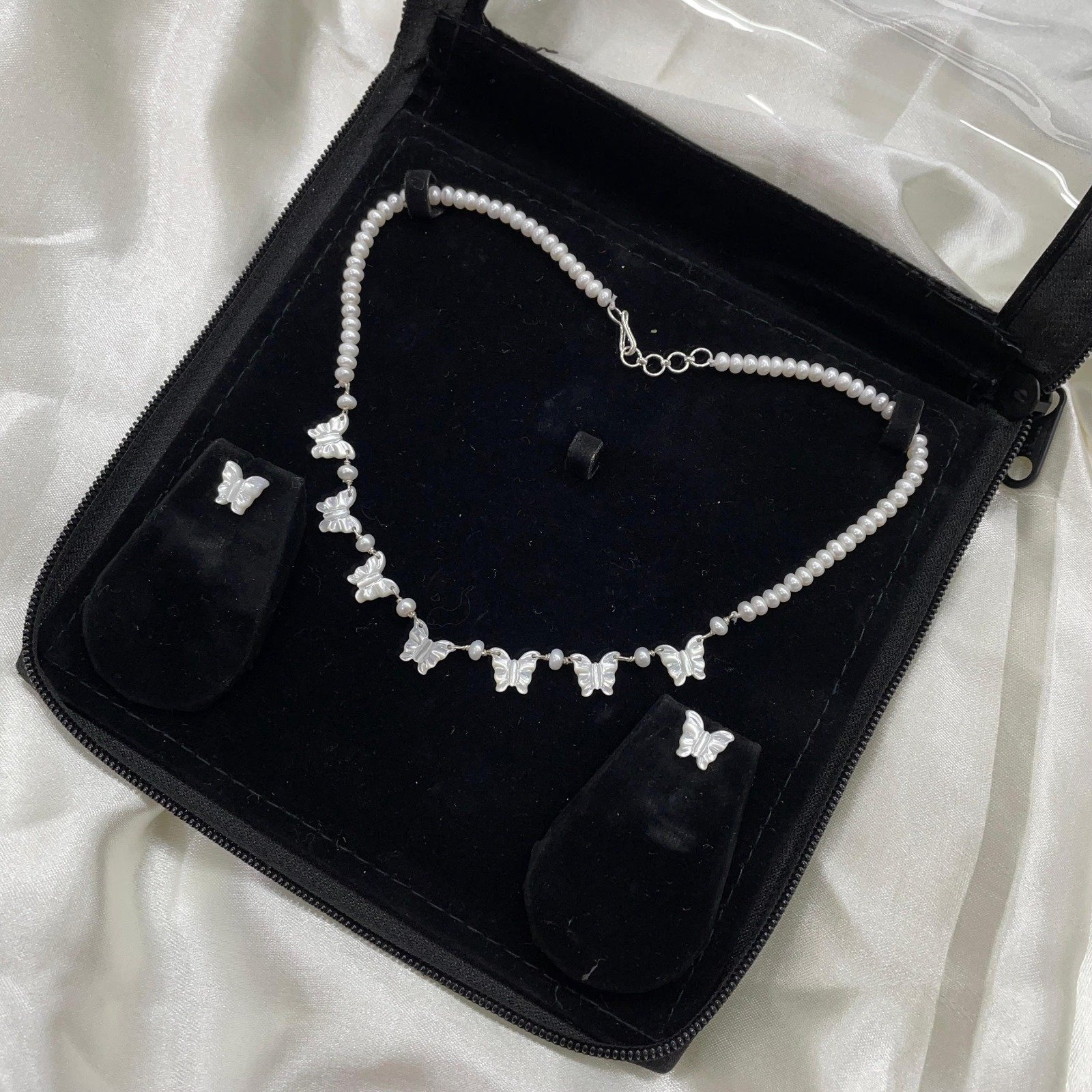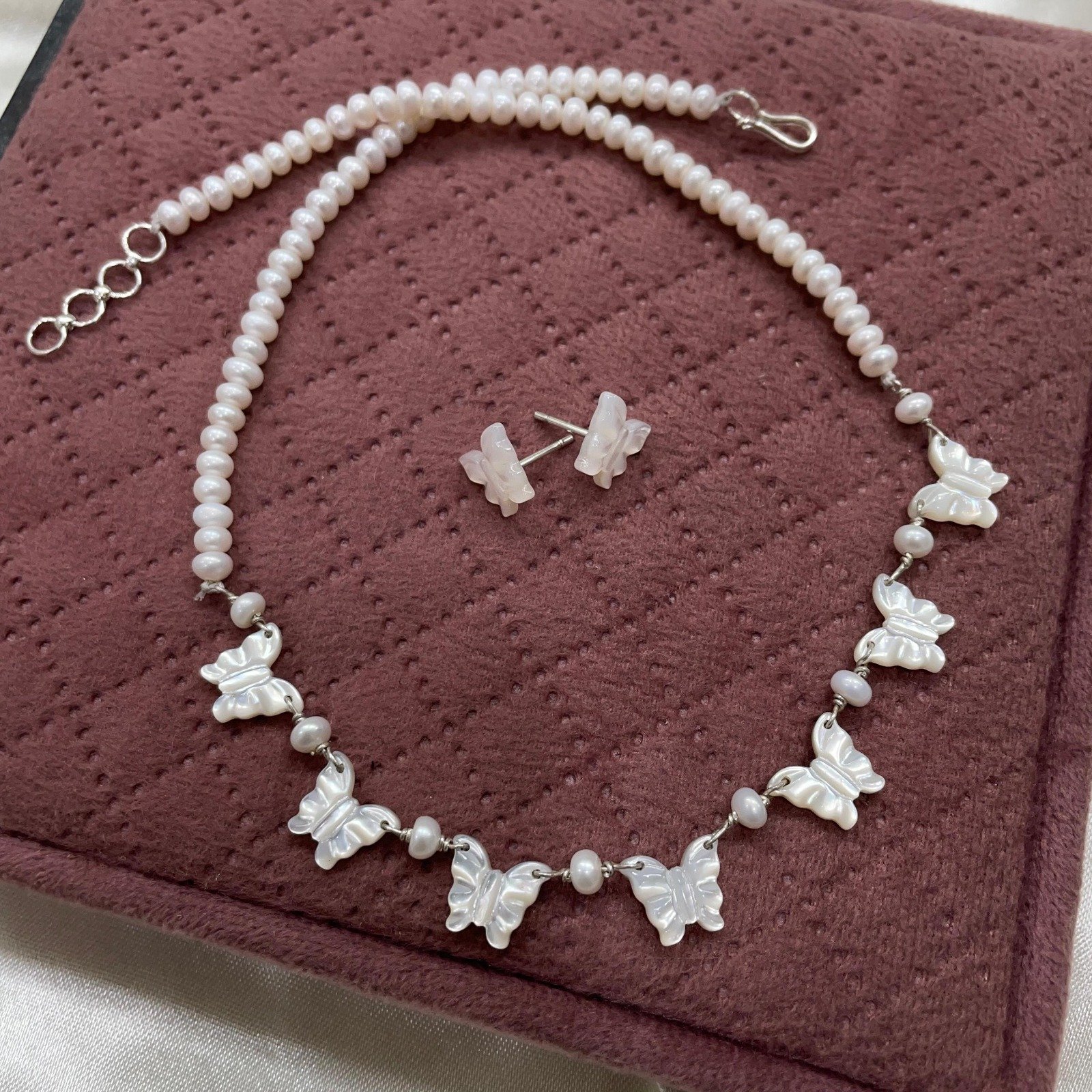 Elevate your style with this original handmade pearl necklace and earrings set featuring a delicate butterfly design. Crafted from high-quality shell pearls, this unique jewelry set is perfect for weddings, anniversaries, or a thoughtful gift for her.