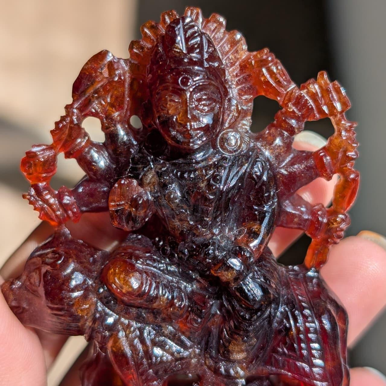Hessonite Garnet Durga Idol, Gomed Gemstone Goddess Statue