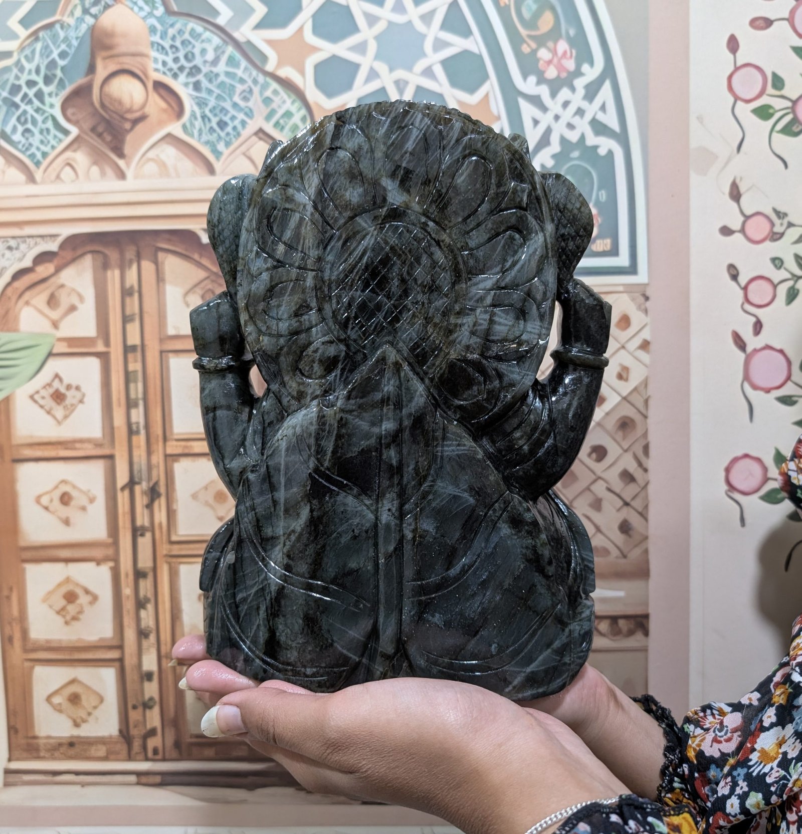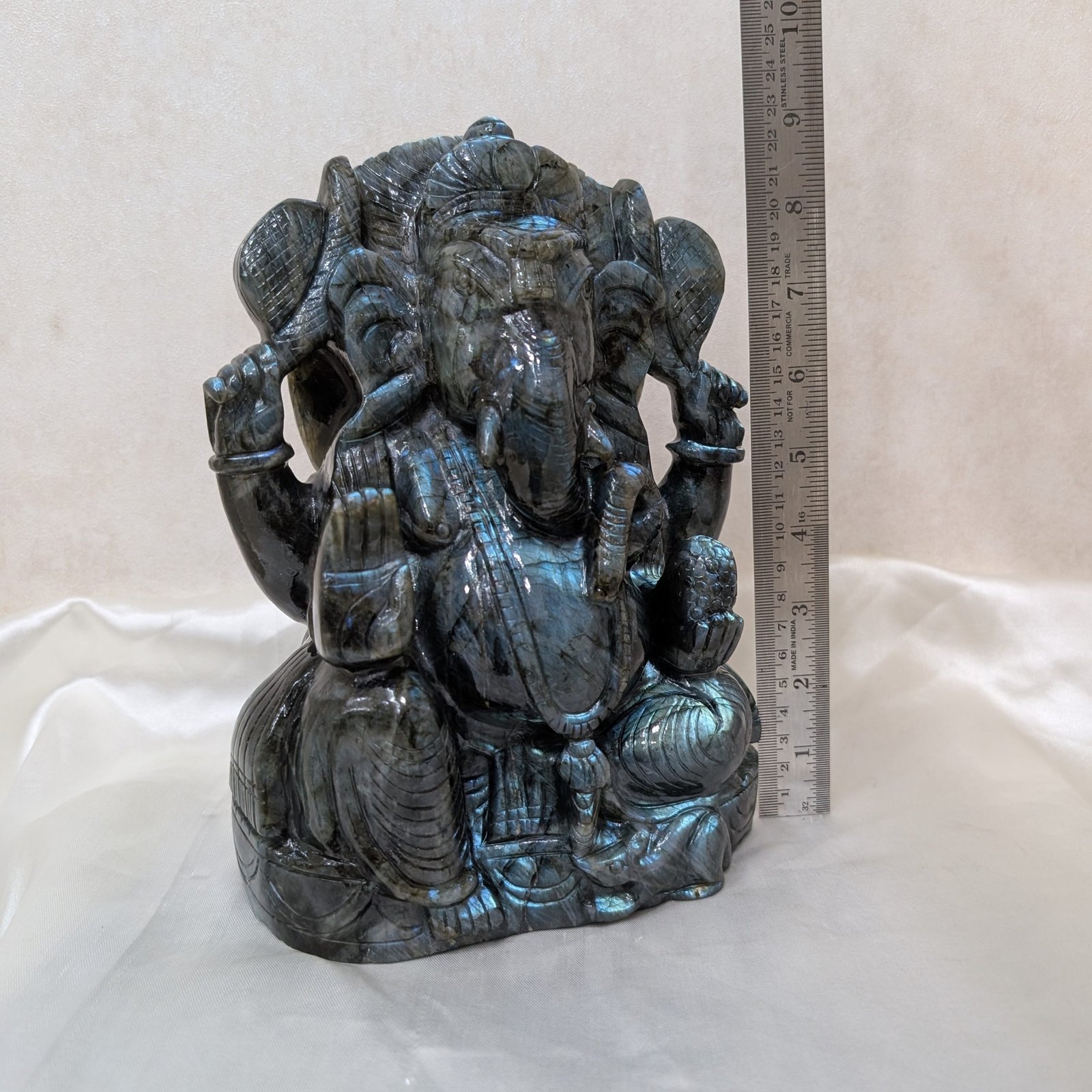Labradorite Ganesha Idol, 8.85″ Carved Ganesha Statue Idol