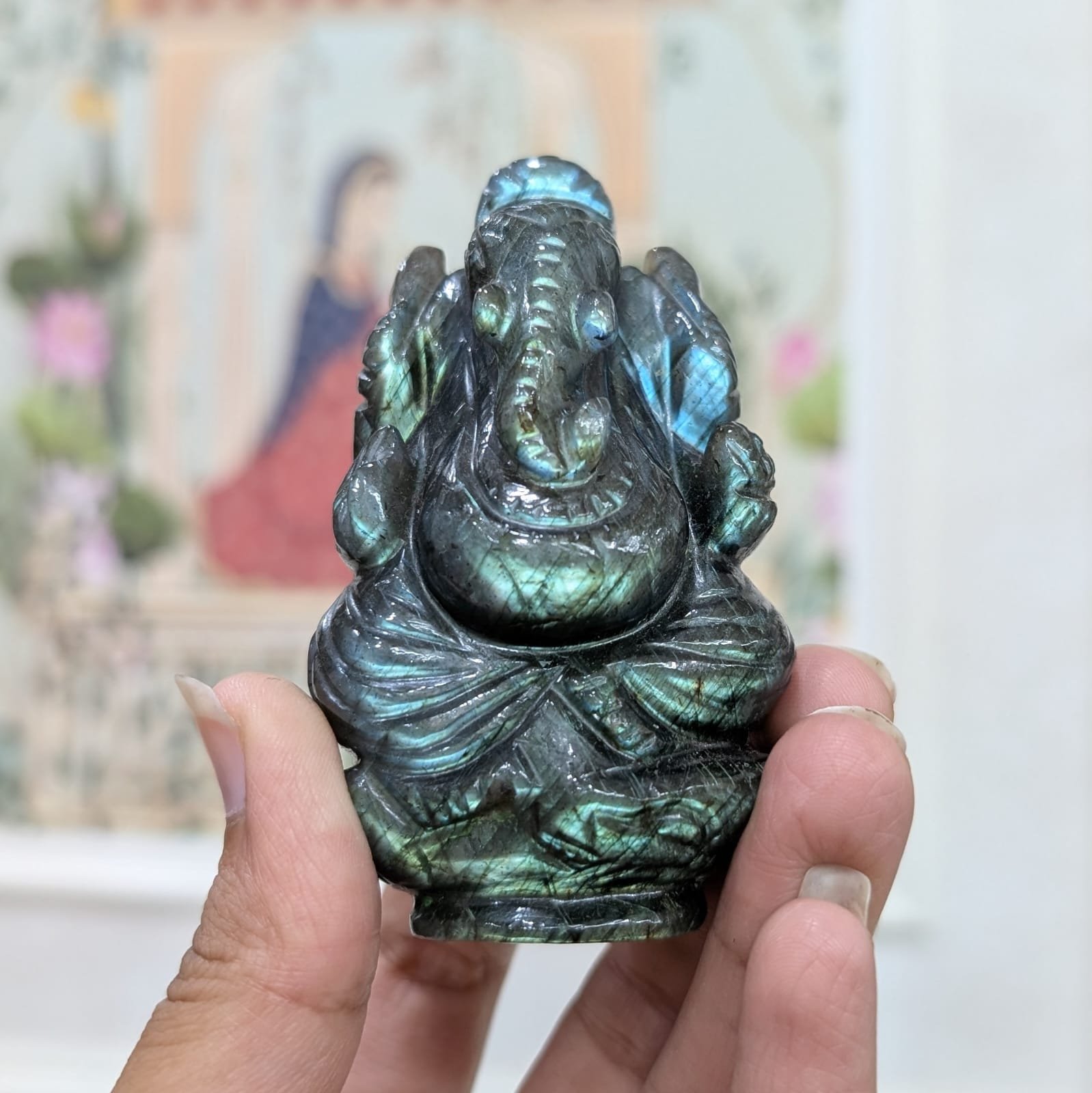 ▪️ The natural labradorite’s iridescent sheen combined with expert craftsmanship makes this idol a meaningful addition that sets it apart from common décor pieces.