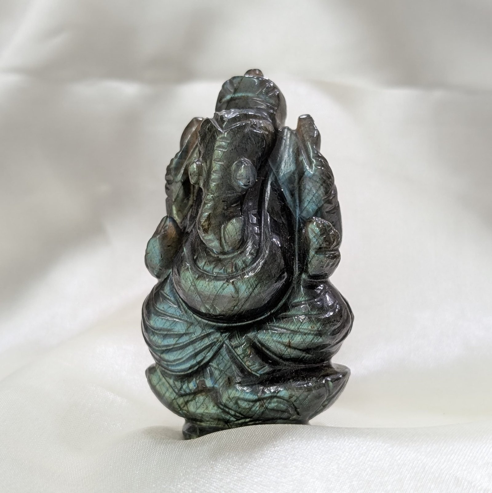 ▪️ Elevate your spiritual space with this hand-carved Labradorite Ganesha Idol, a unique gemstone representation of Lord Ganesha designed for worship and meditation.