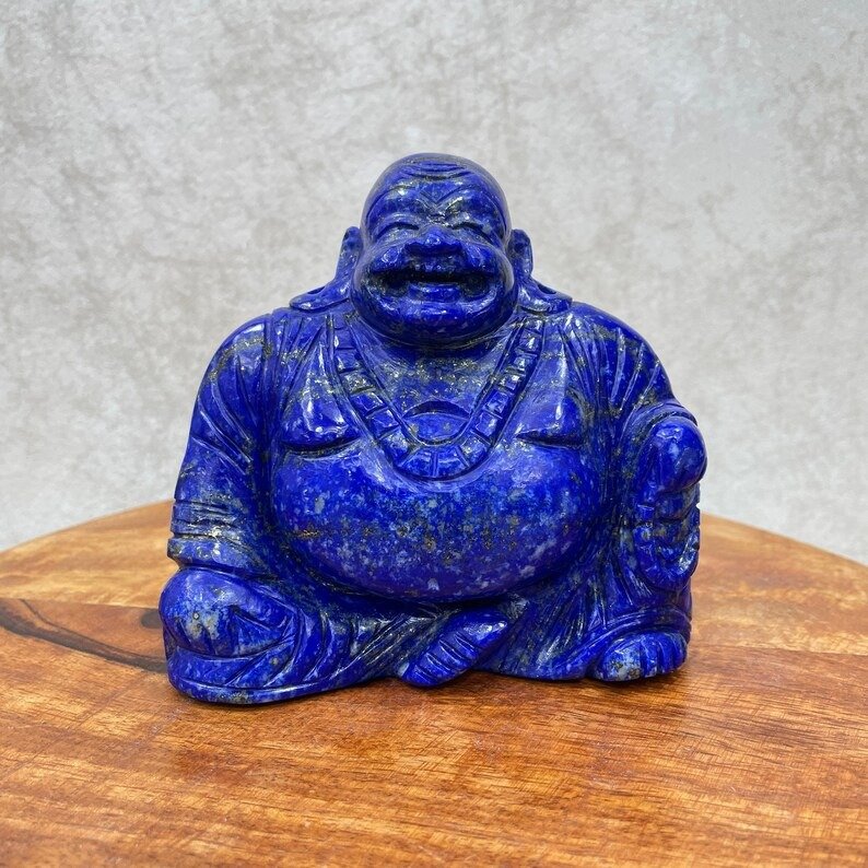 Lapis Lazuli Laughing Buddha Statue – 4.5″ Carved Laughing Buddha