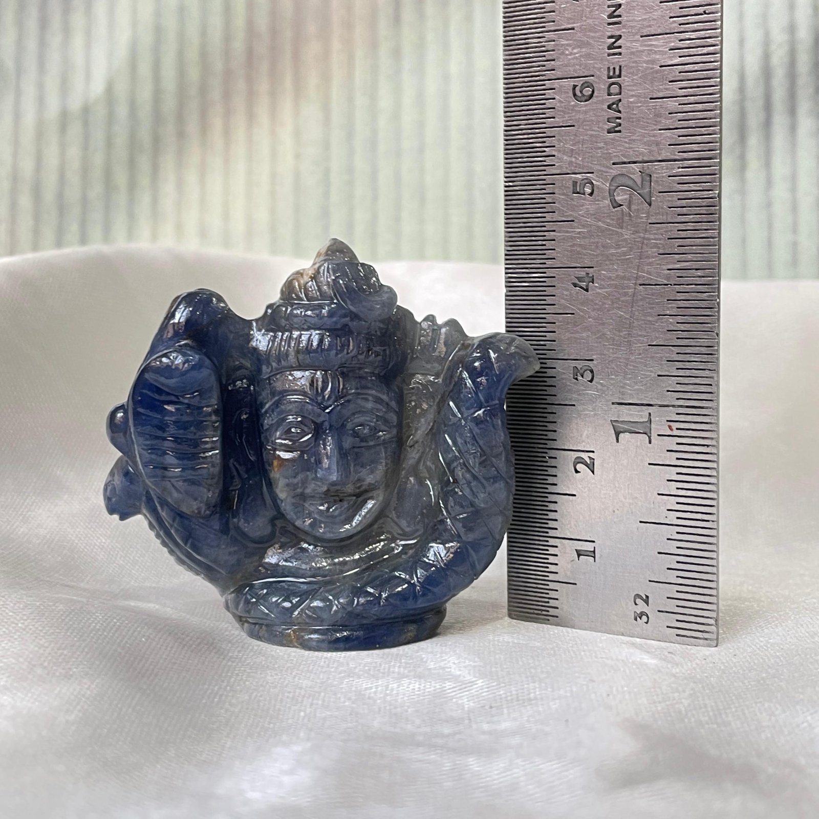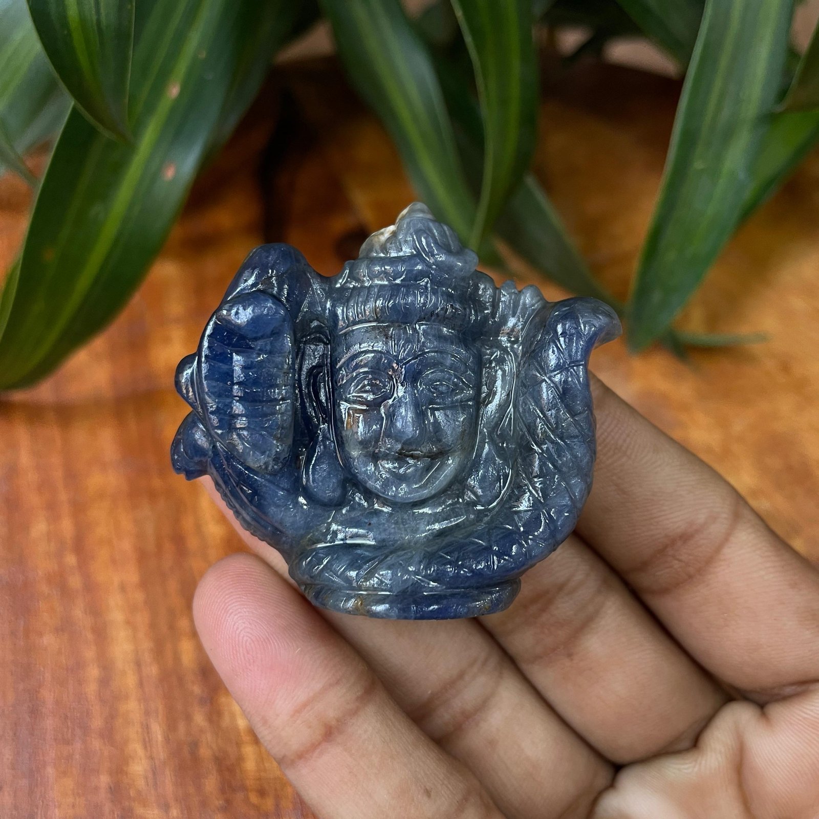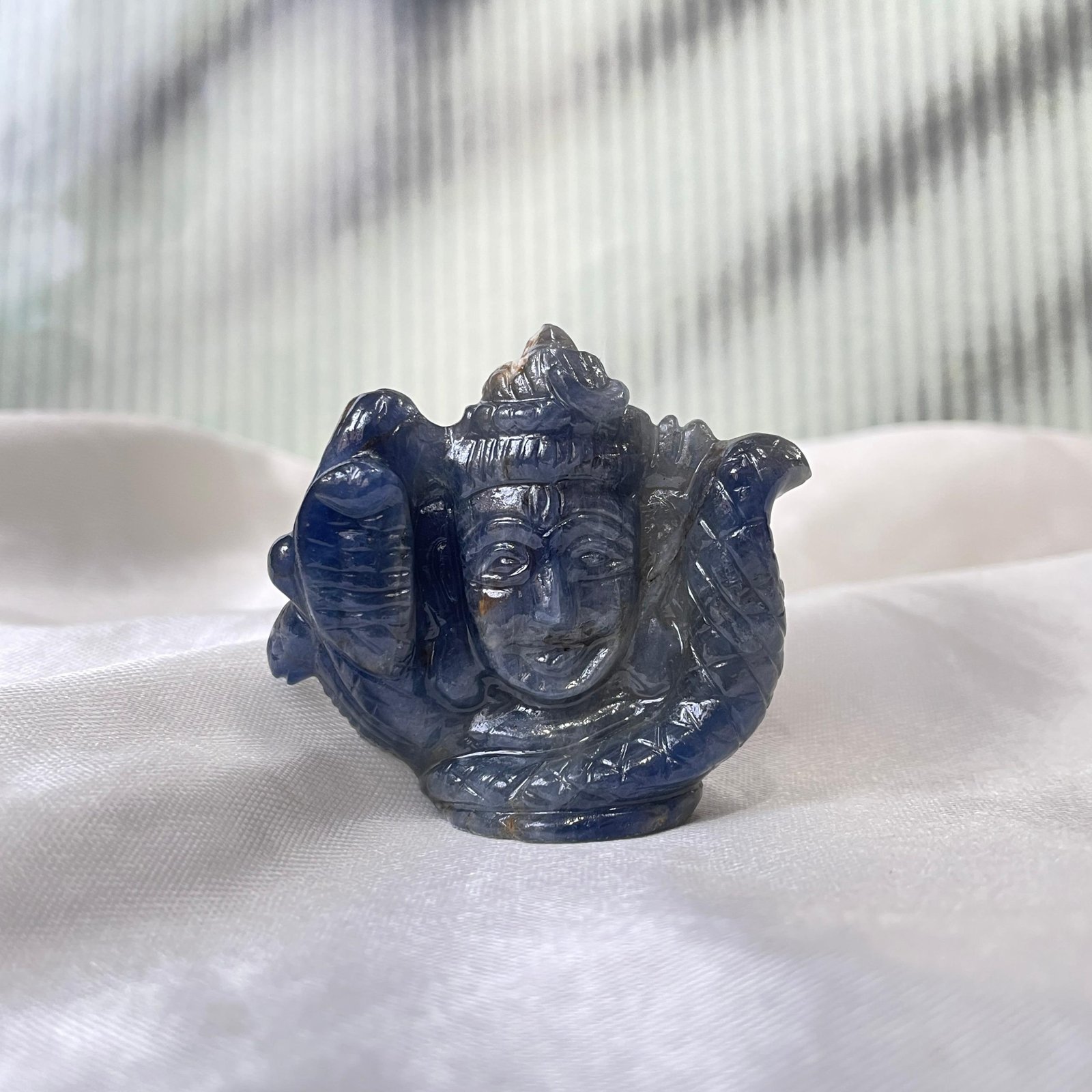 Invoke divine energy and timeless beauty with this hand-carved Blue Sapphire Shiva Head, crafted from natural gemstone by skilled artisans. Lord Shiva symbolizes destruction of negativity, inner strength, meditation, and supreme consciousness, making this sacred piece ideal for worship, meditation spaces, or spiritual gemstone collections.