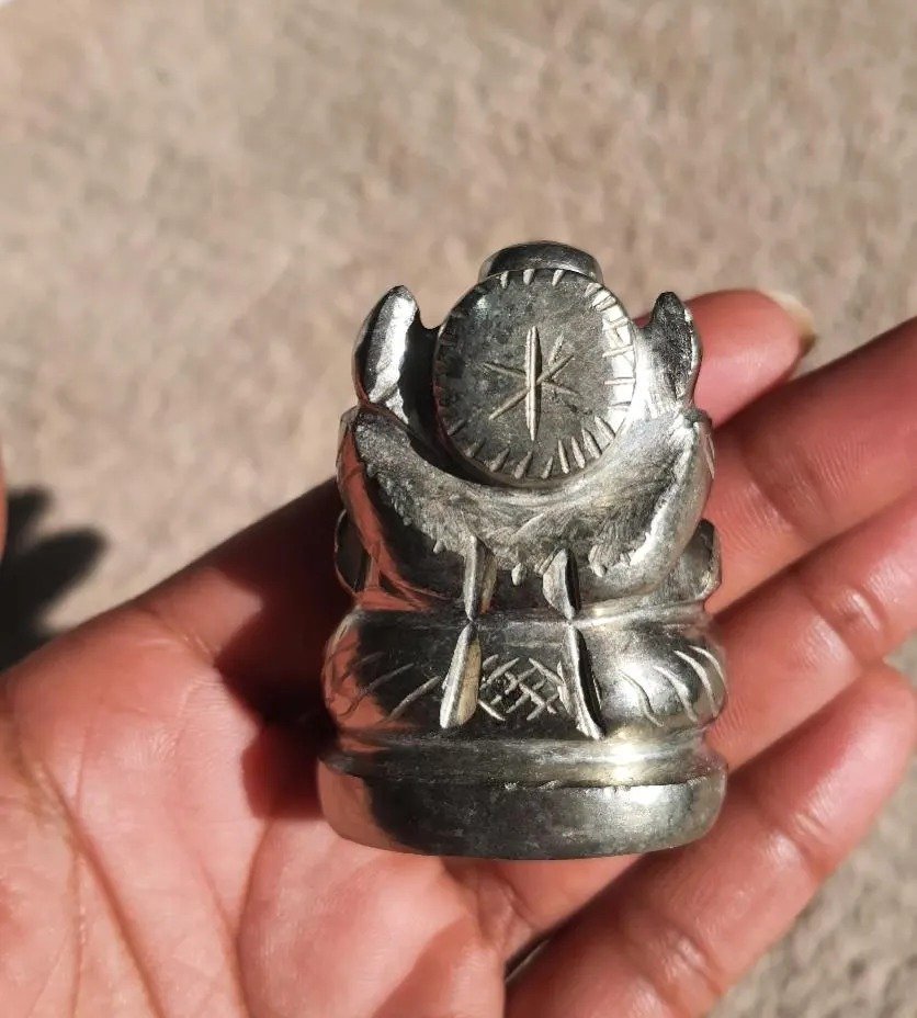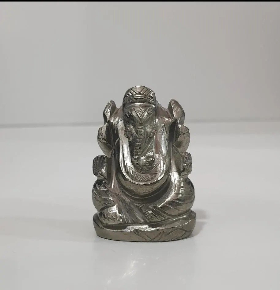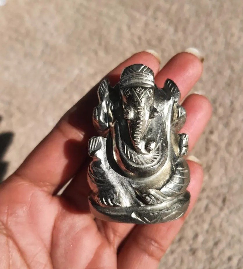 Pyrite Ganesha statue combines the energetic qualities of pyrite with the spiritual symbolism of Lord Ganesha. Inspired peace, positivity, and spiritual upliftment in meditation spaces, altars, or prayer rooms. Pyrite is widely referred to as a “stone of wealth & success,” believed to attract prosperity and good fortune when paired with Lord Ganesha’s auspicious energy. Pyrite is marketed as promoting mental strength, confidence, and an energetic shield against negativity or bad vibes.