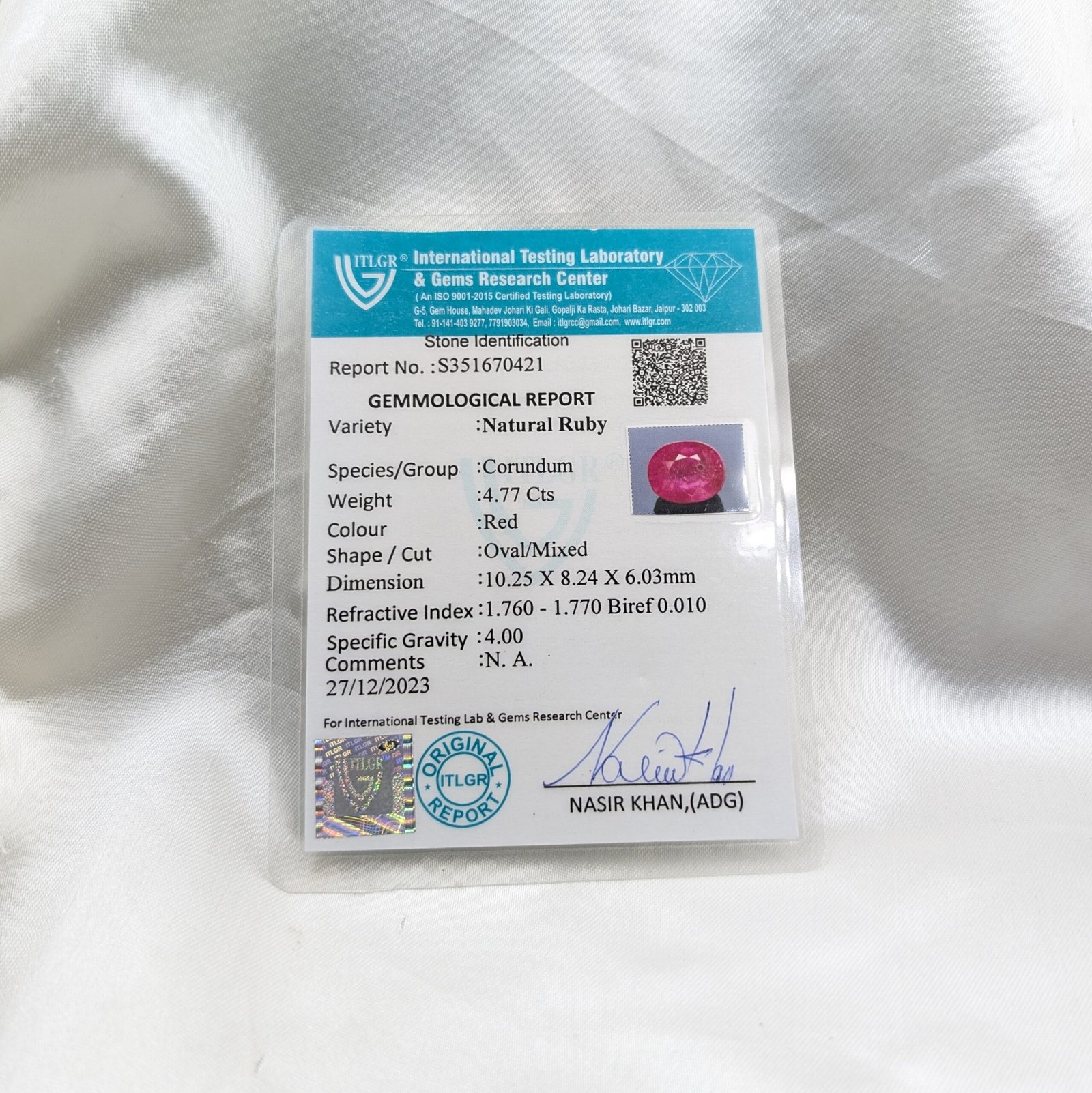 | Certification | ITLGR – International Testing Laboratory & Gems Research Centre (Jaipur) |