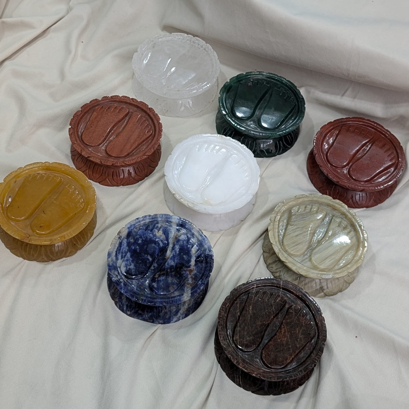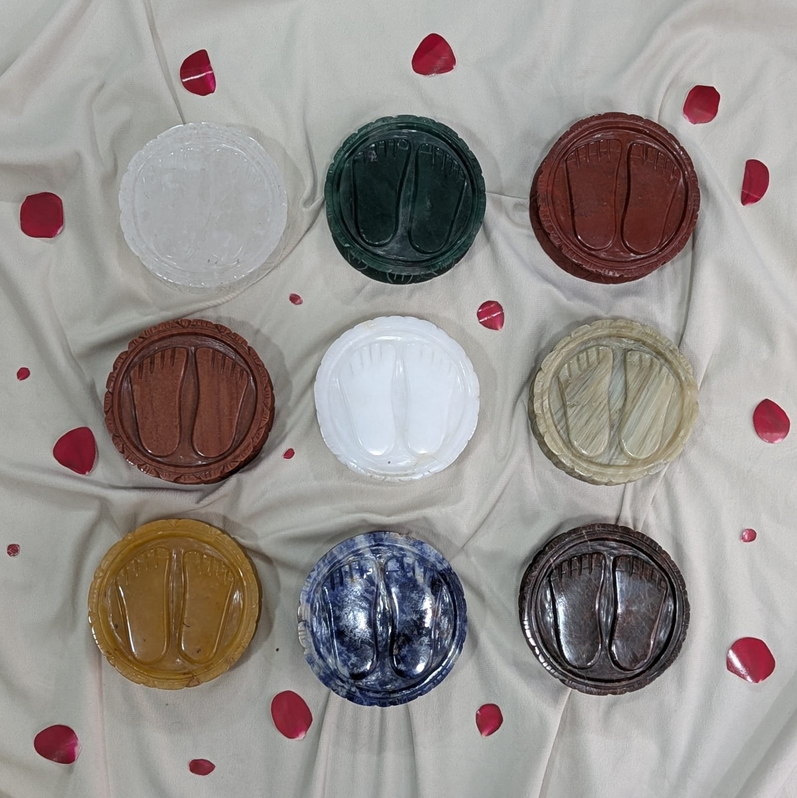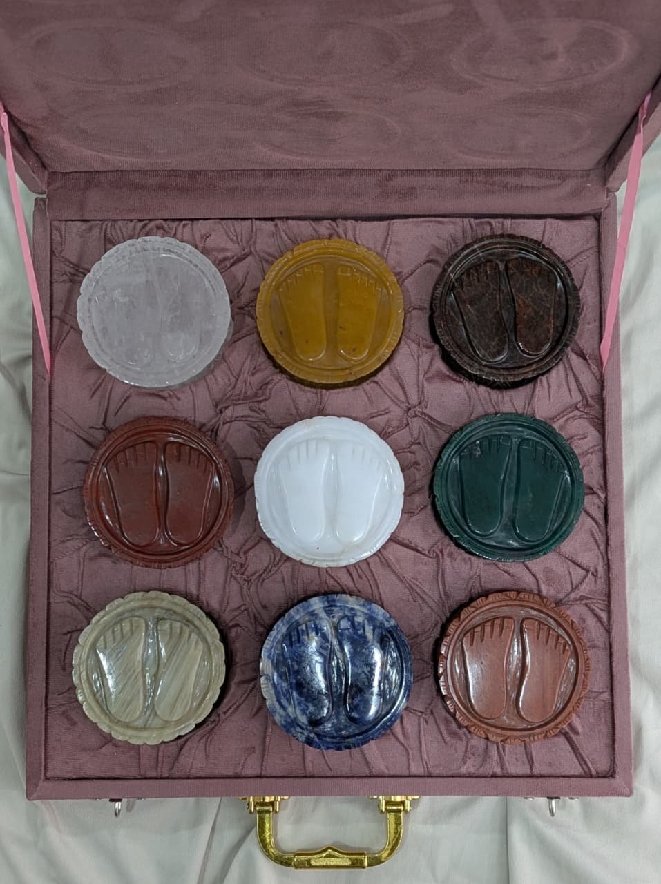 Because natural stones are used, every Navratna Laxmi Charan Paduka is unique, with slight variations in texture and color. This adds authenticity and makes each piece special.