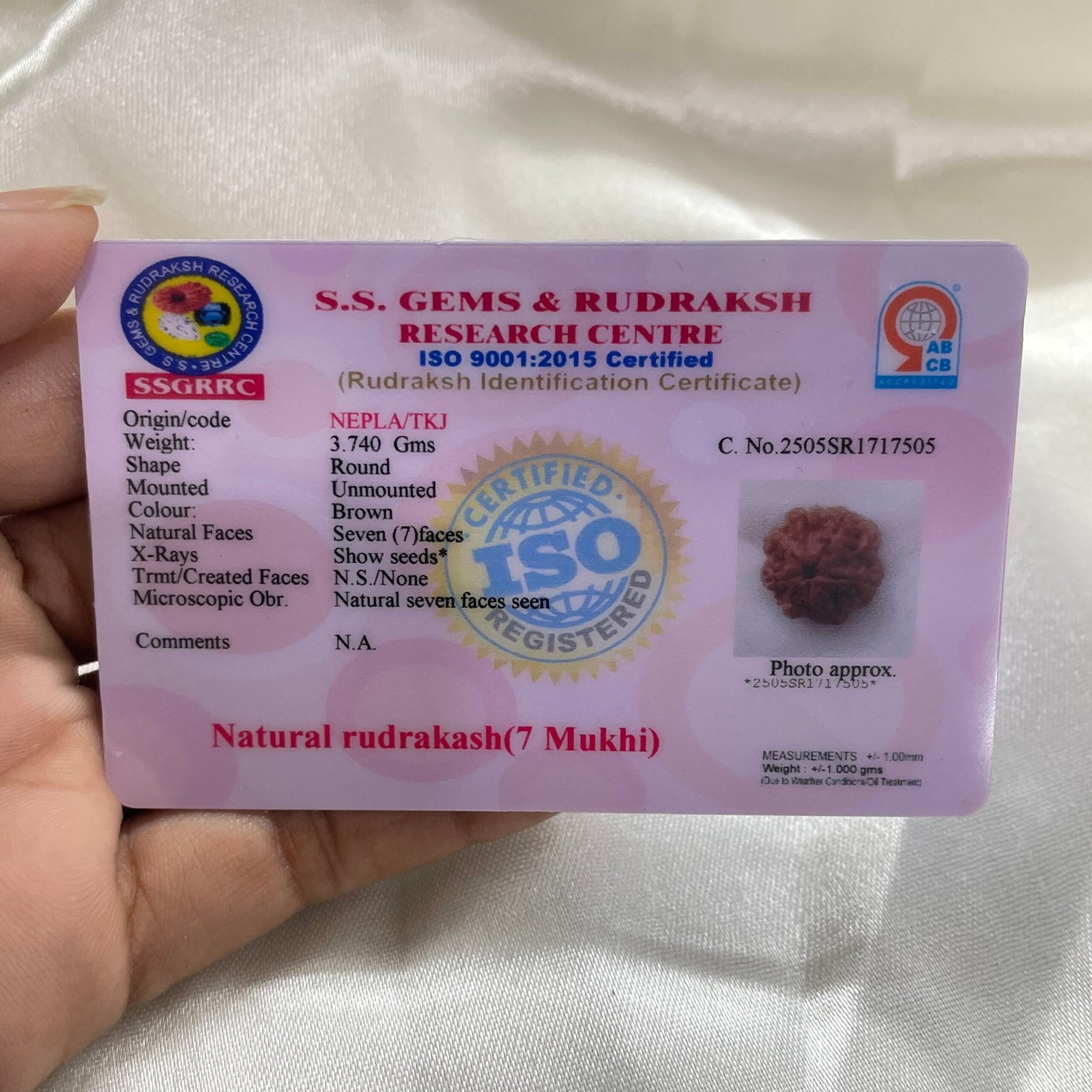 Nepali 7 Mukhi Rudraksha, Lakshmi’s Blessing, Lab Certified Rudraksh