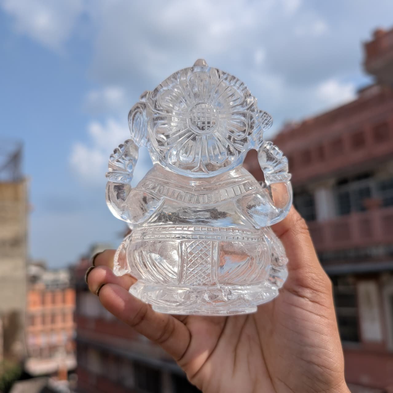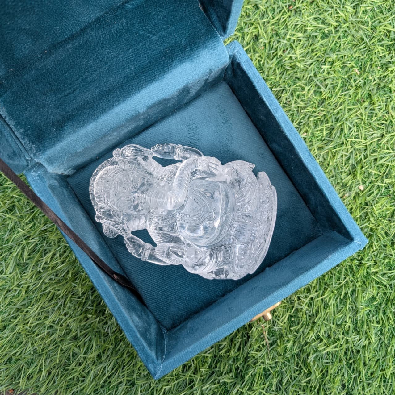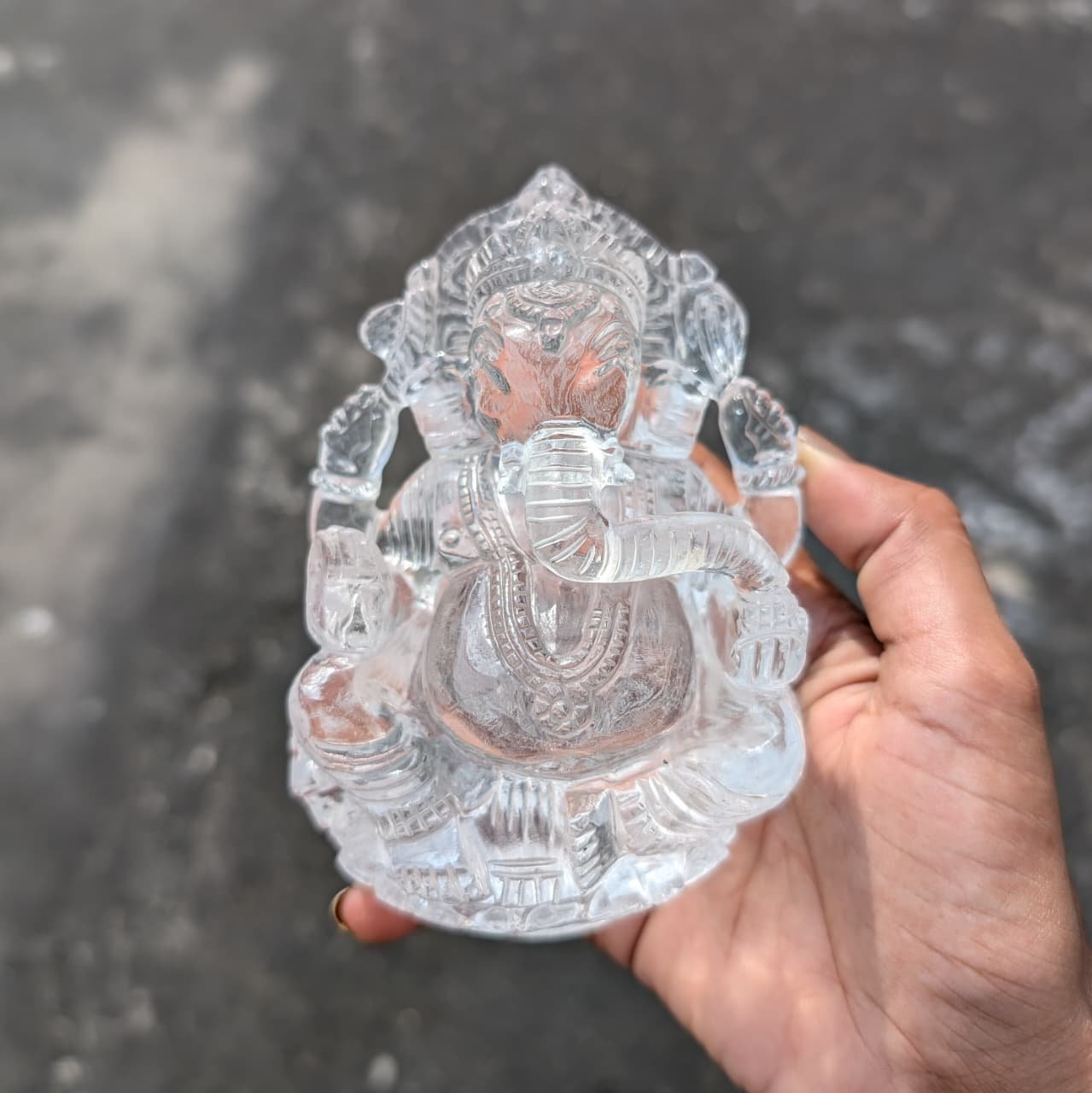 The Original Sphatik Ganesha Statue combines the divine blessings of Lord Ganesha with the energetic properties of natural crystal.