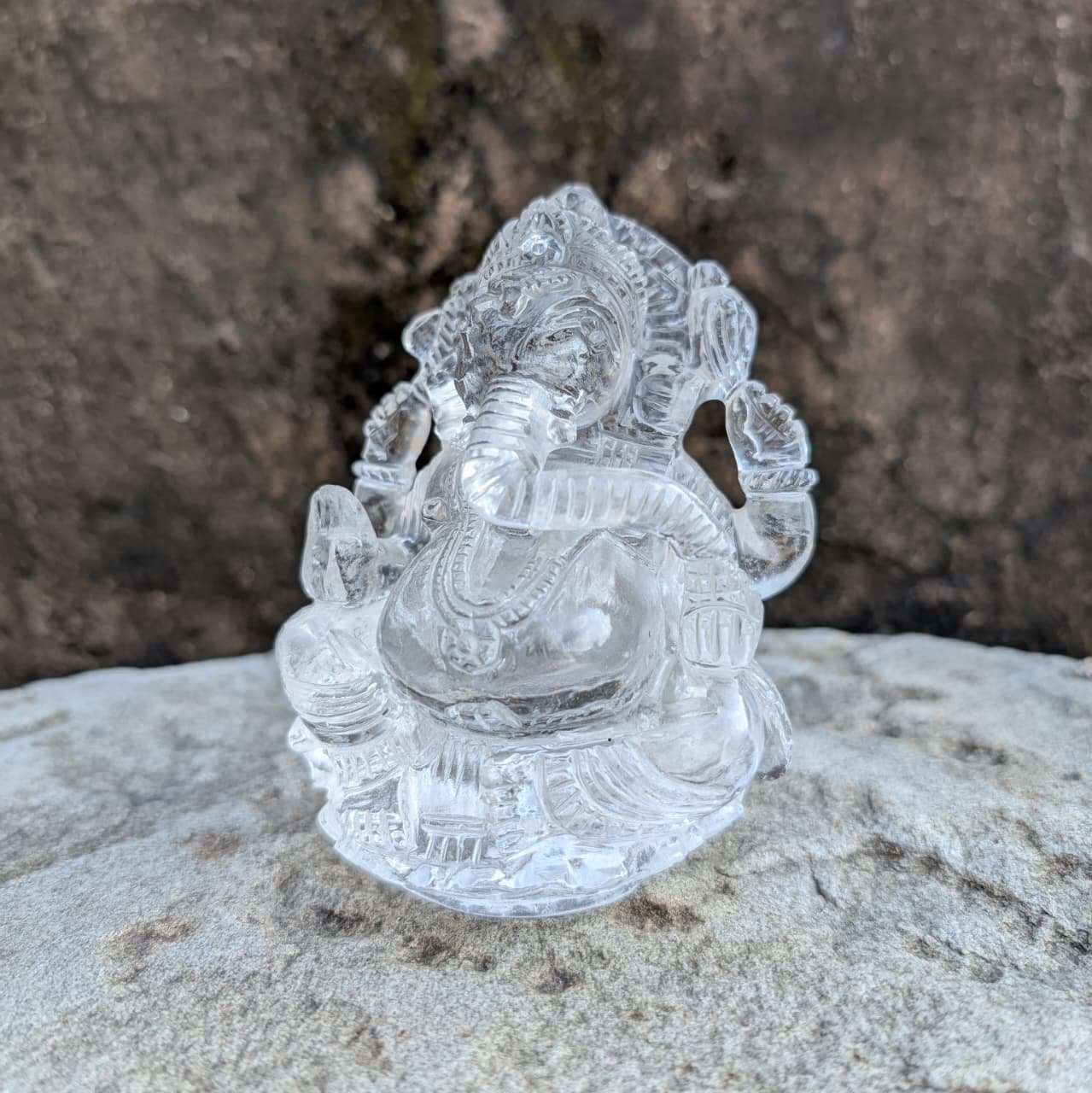 The clear crystal energy of the Original Sphatik Ganesha Statue helps deepen meditation and spiritual awareness.