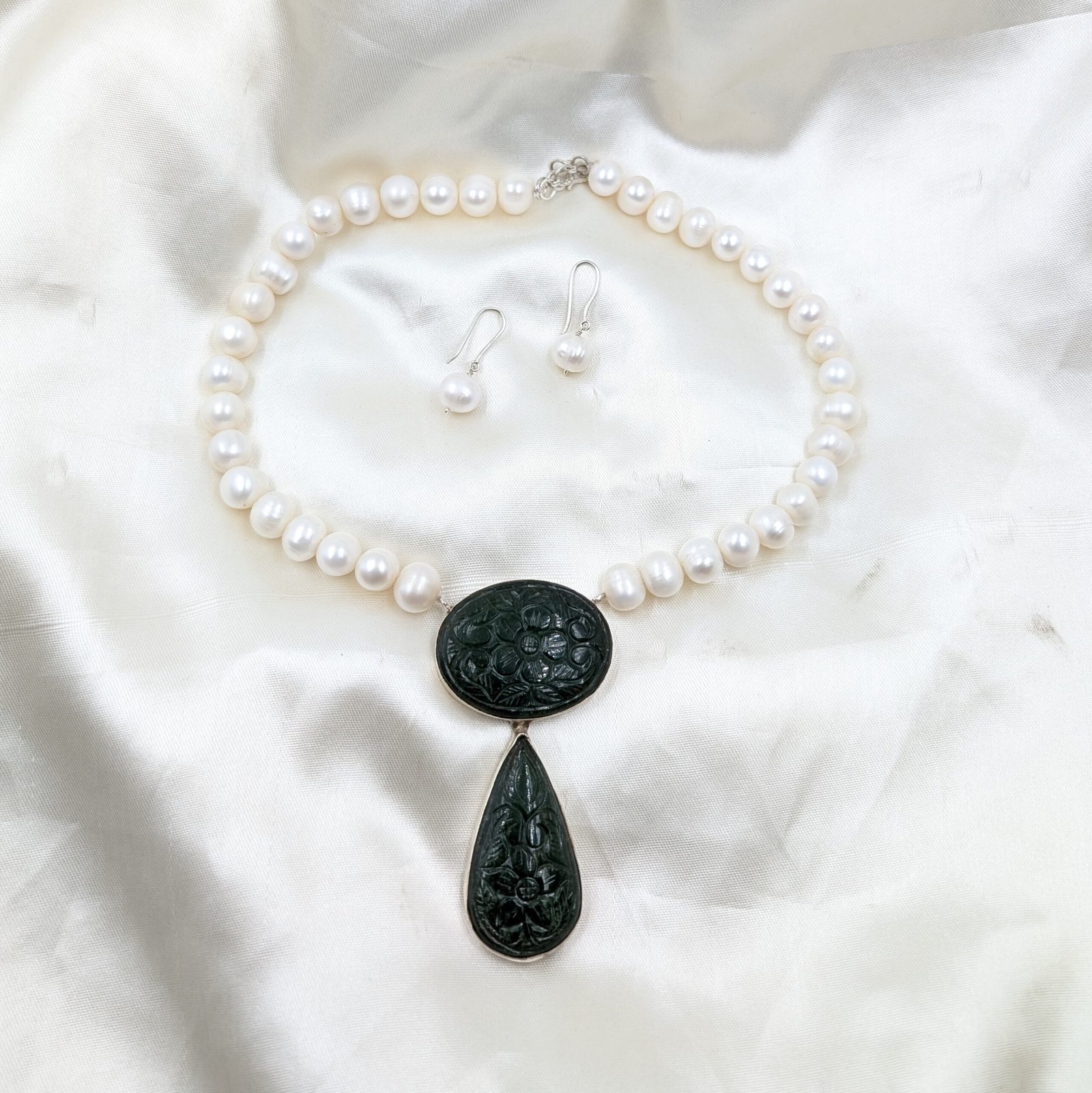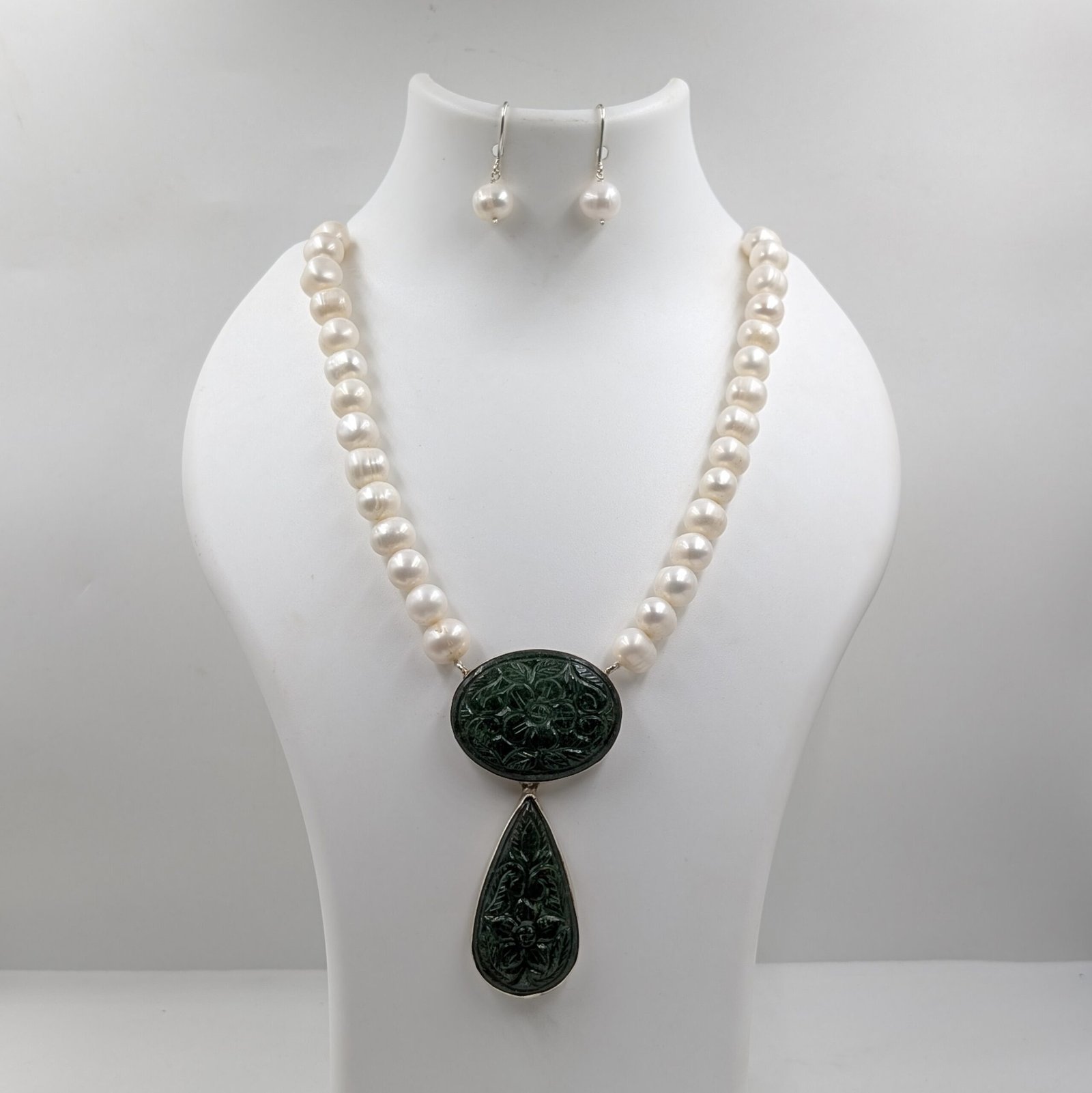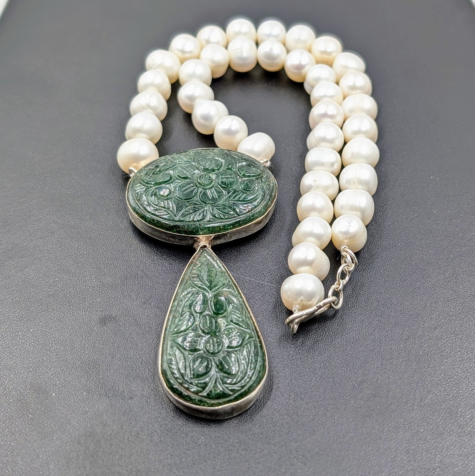 • Elegant blend of freshwater pearls and green jade for a timeless, classy look