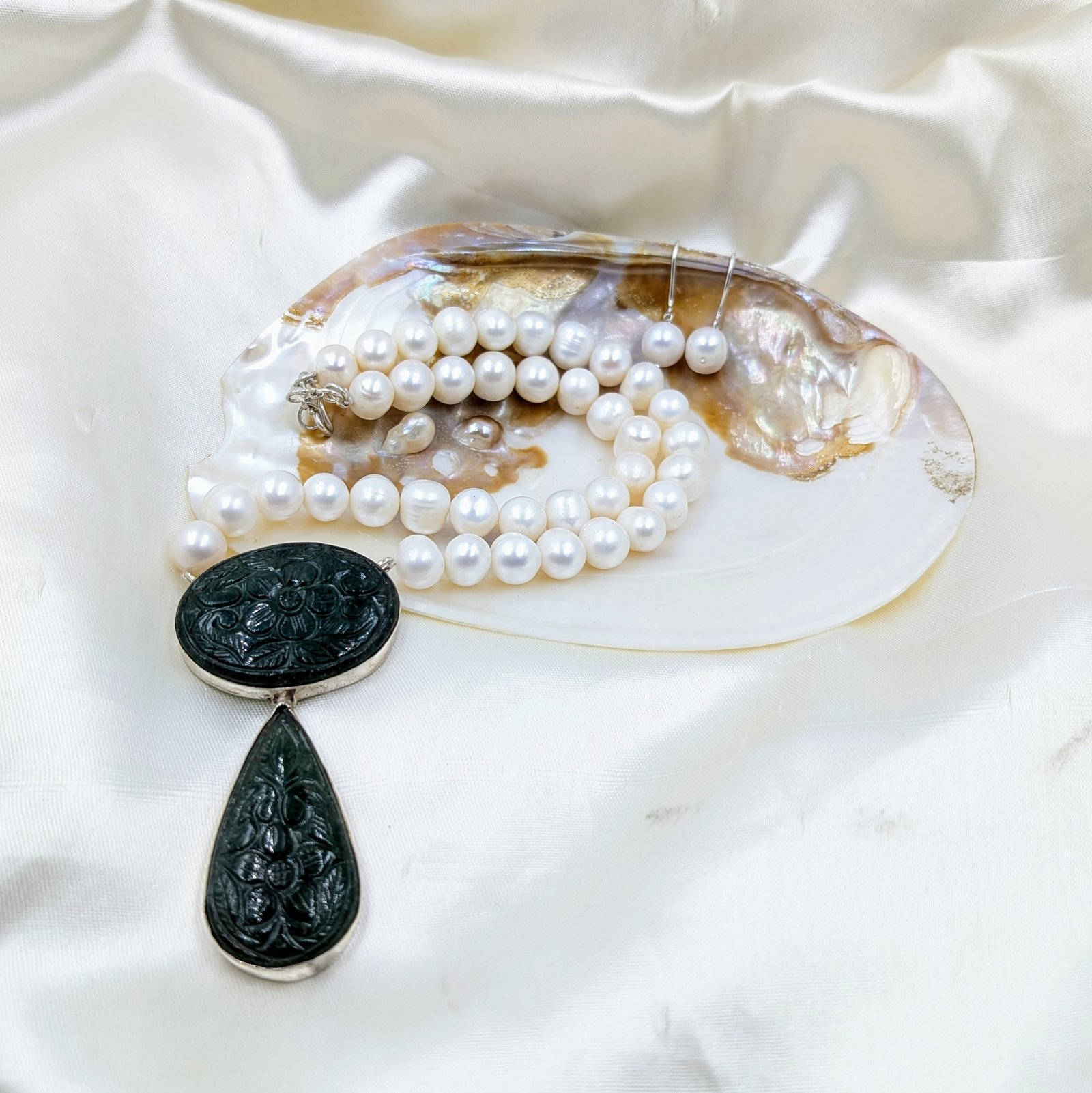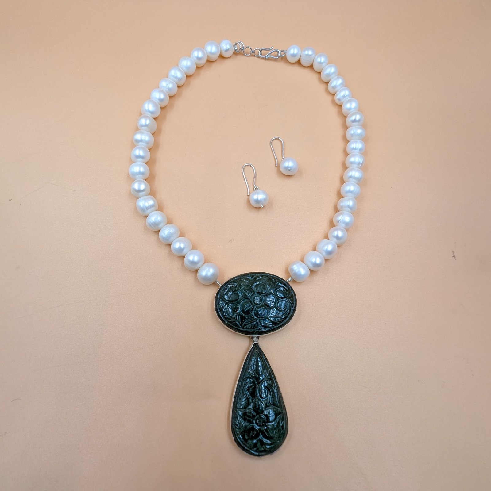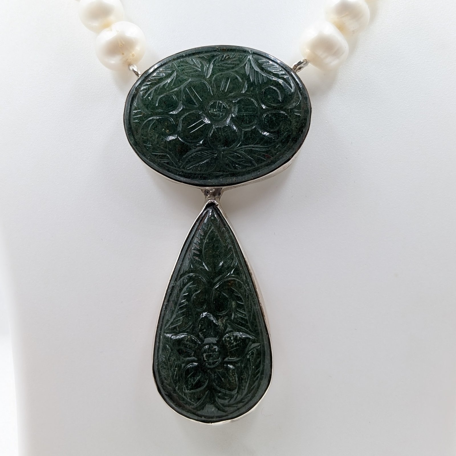 • Elegant blend of freshwater pearls and green jade for a timeless, classy look