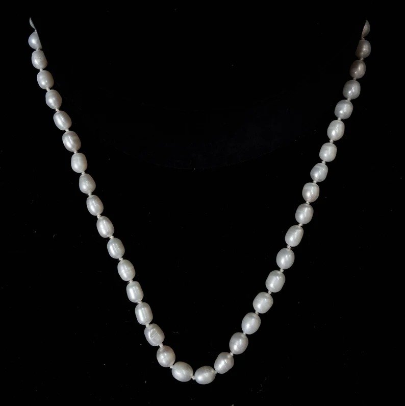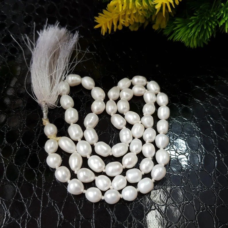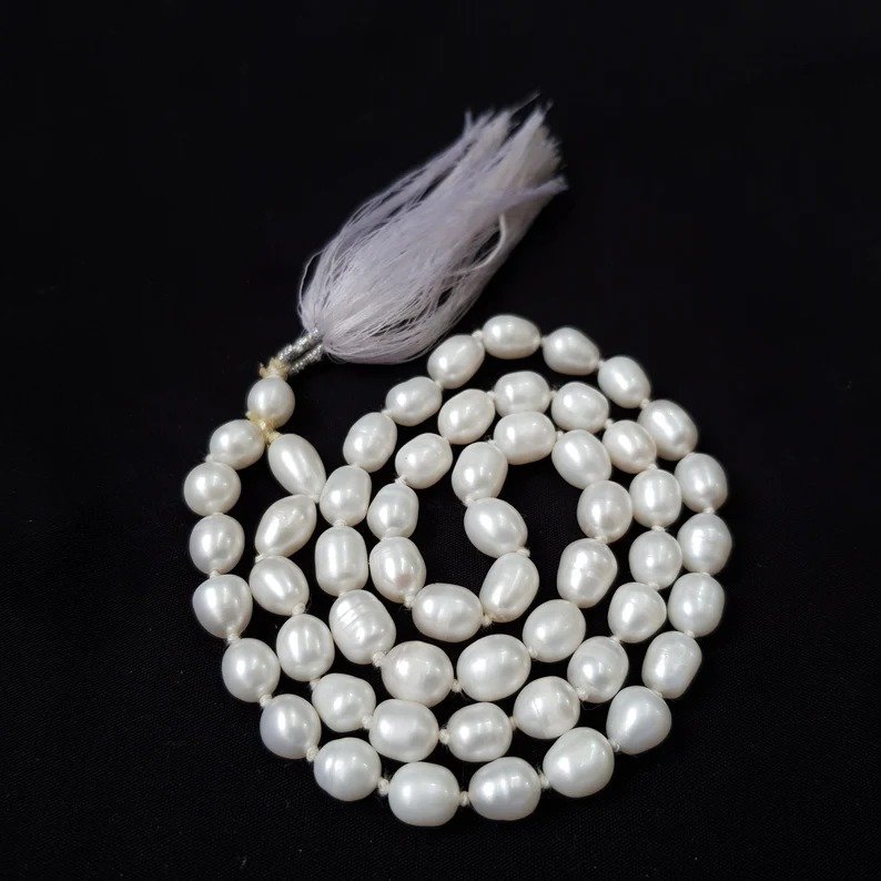 Pearl Mala, 7mm White Natural Pearl Necklace for Gifts