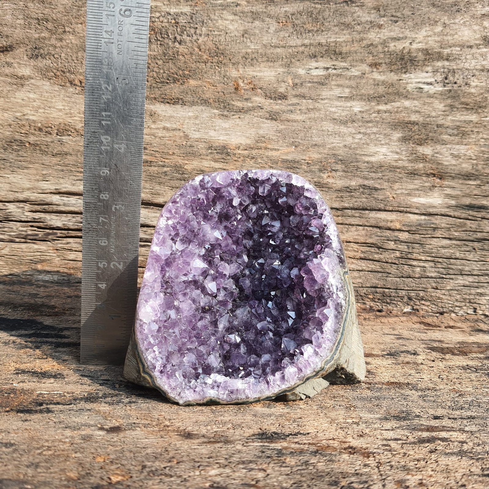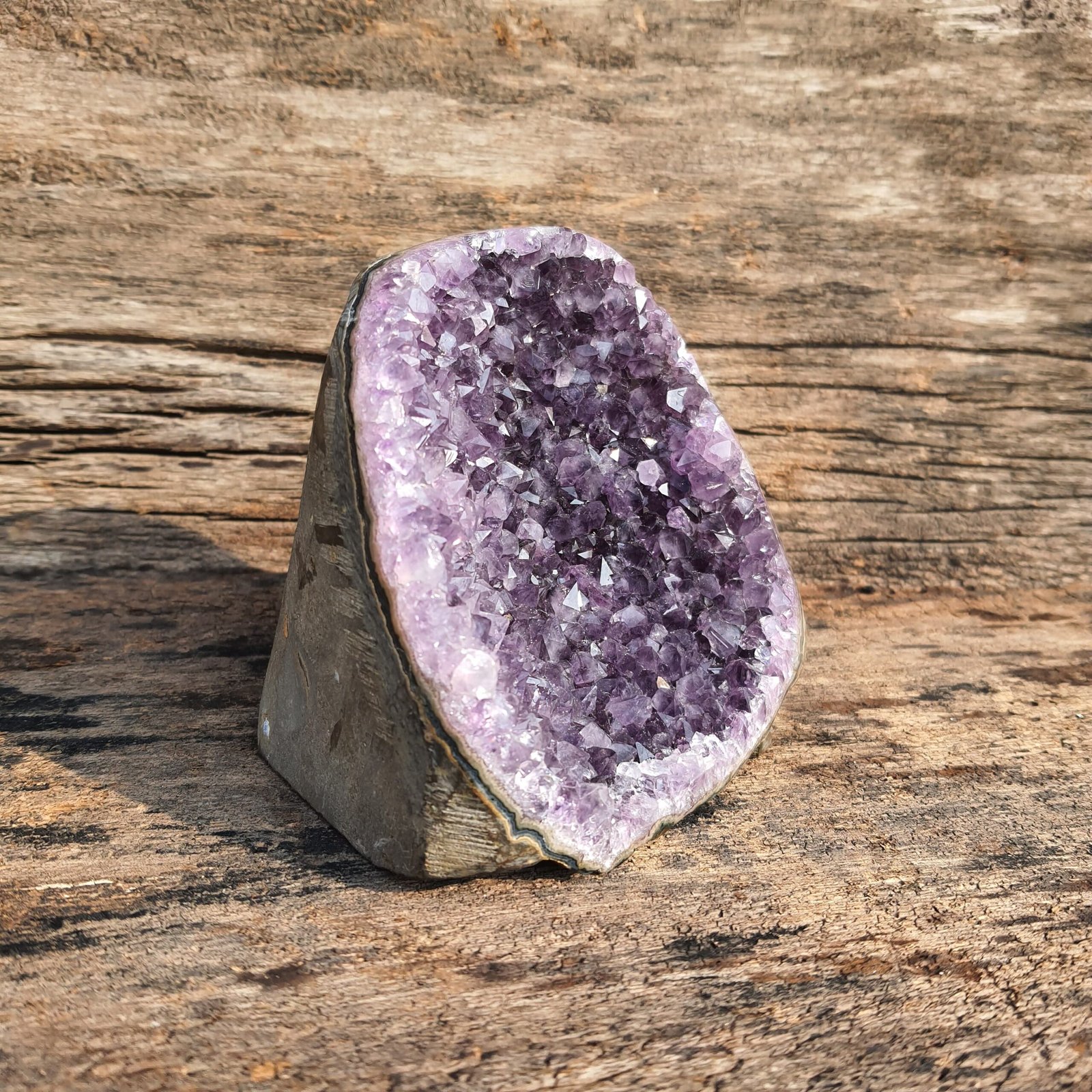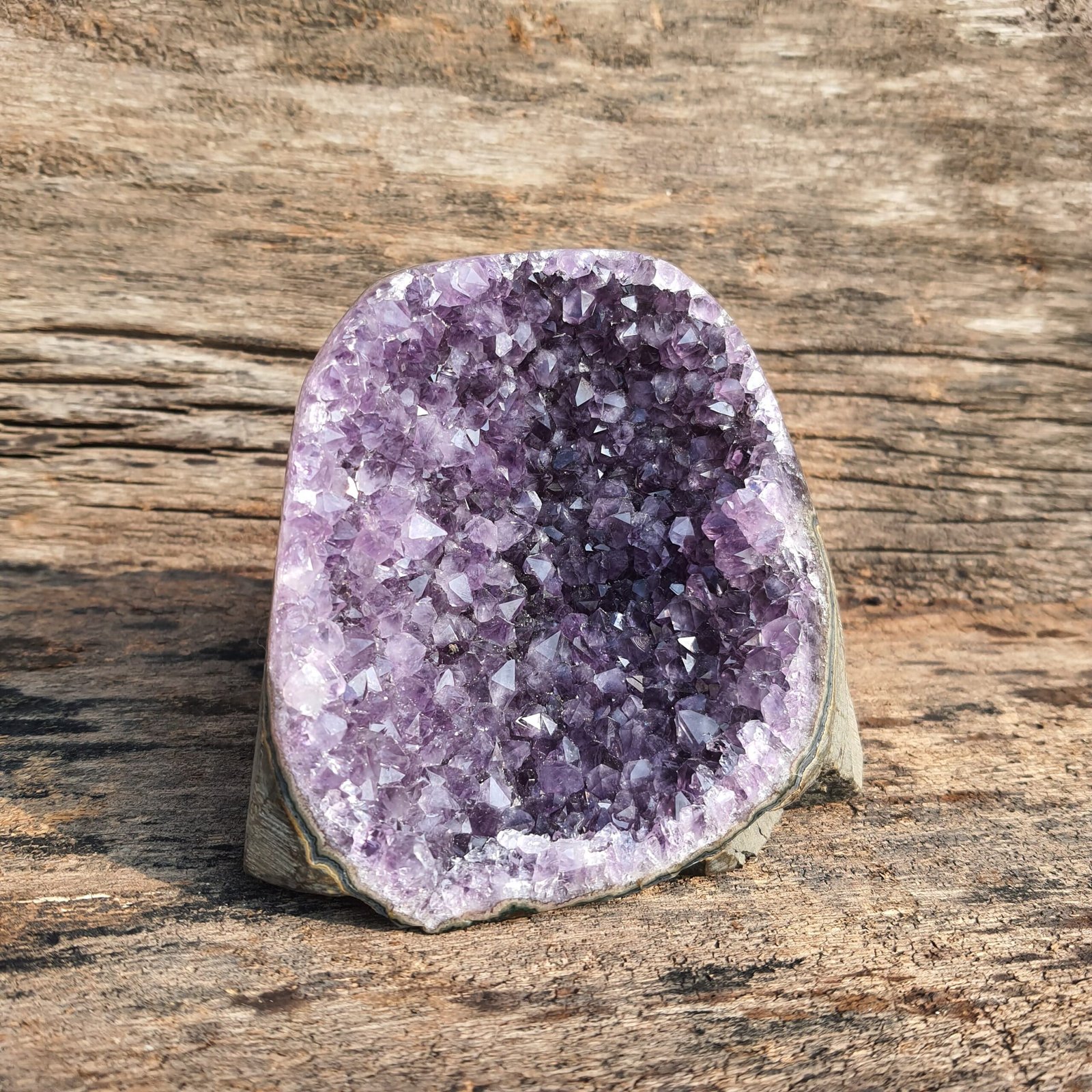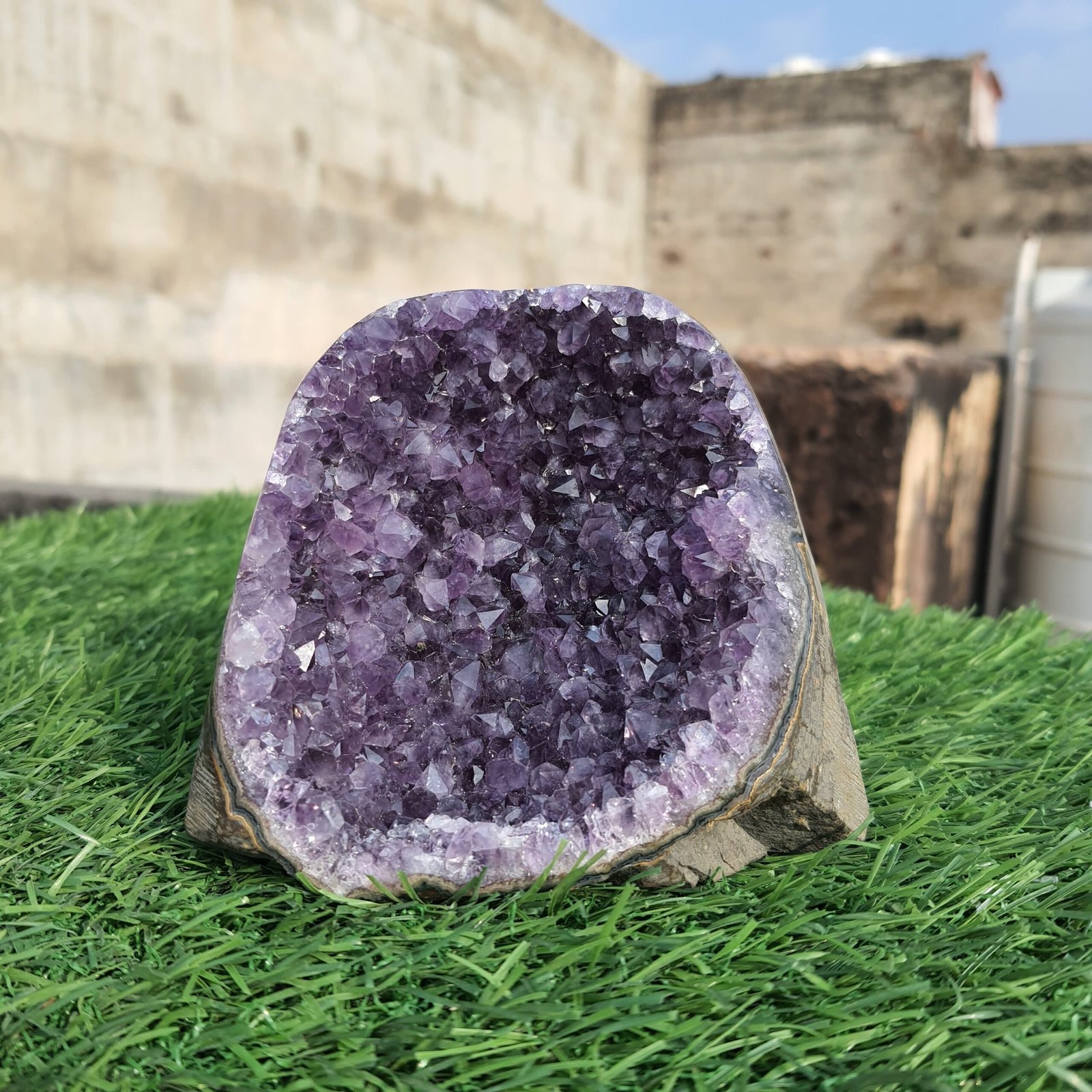 Amethyst geode clusters are believed to promote calmness, reduce stress and anxiety, and support deep relaxation and better sleep. They enhance spiritual awareness, intuition, and mental clarity, making them ideal for meditation and focus. Amethyst is also associated with emotional balance, protection from negative energies, energy cleansing of spaces, creativity enhancement, and support in breaking unhealthy habits.
