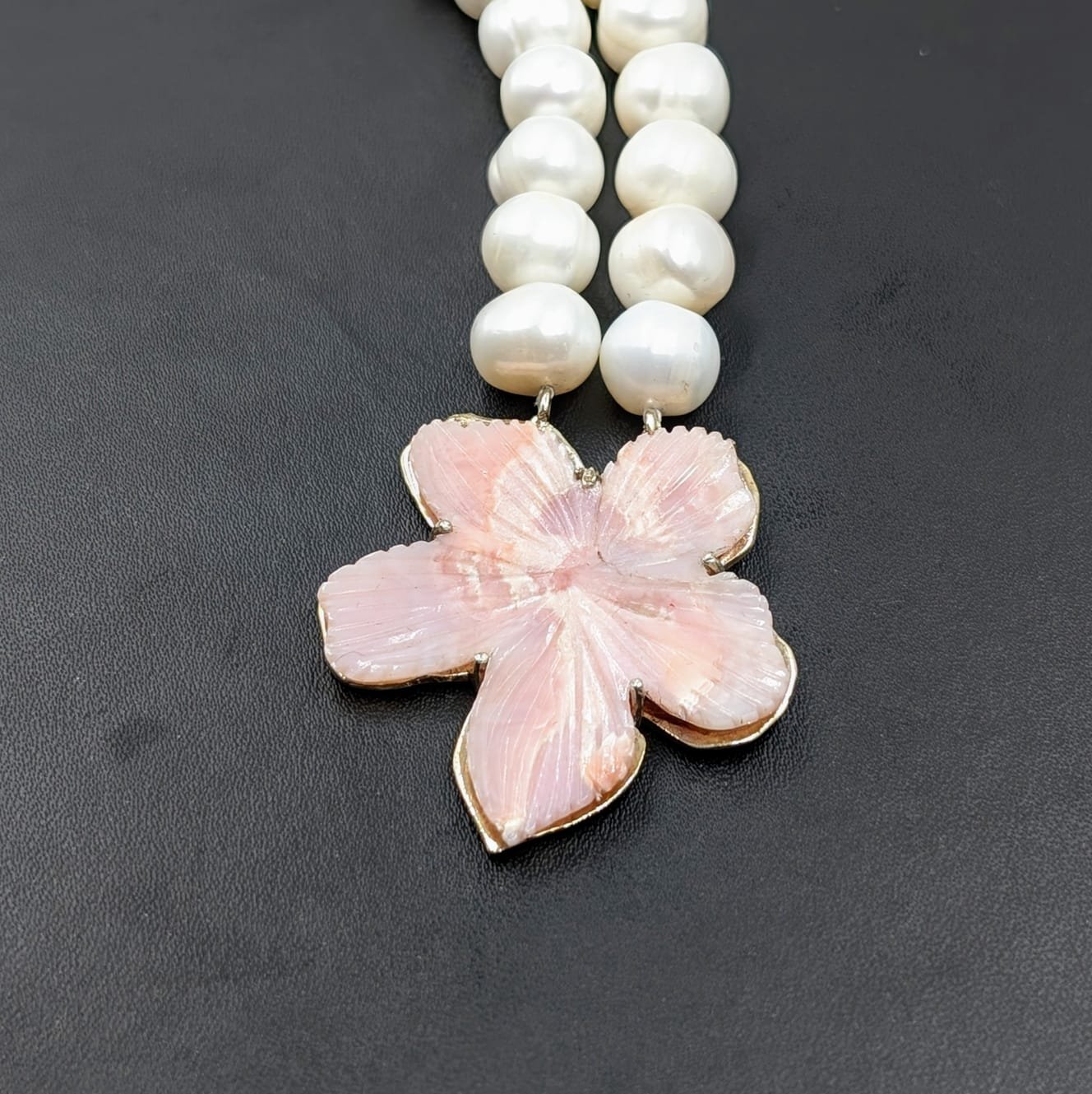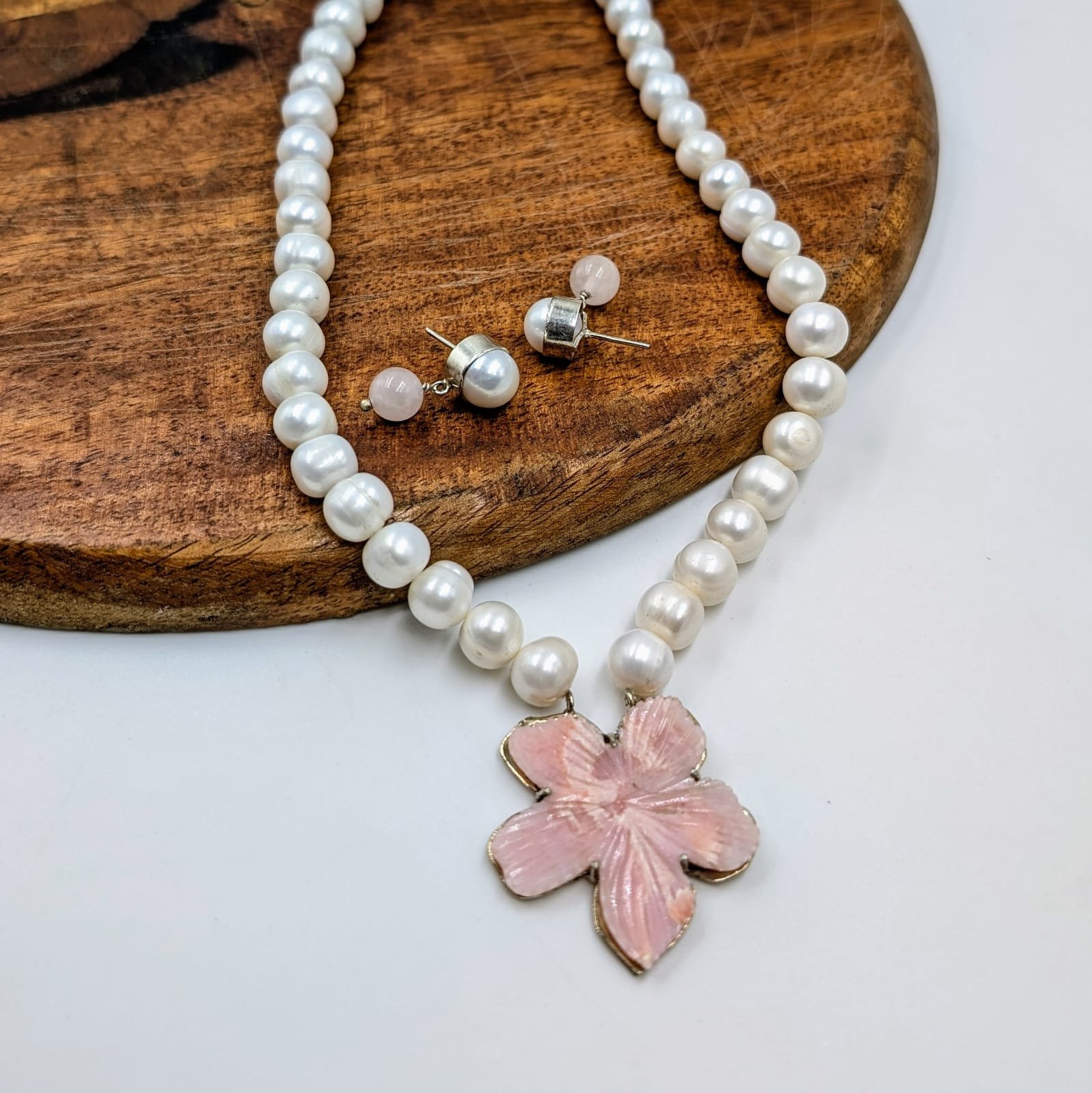 Real Pearl Necklace, Pink Opal Pendant in Silver – Pearls Jewellery – Opal Gemstone