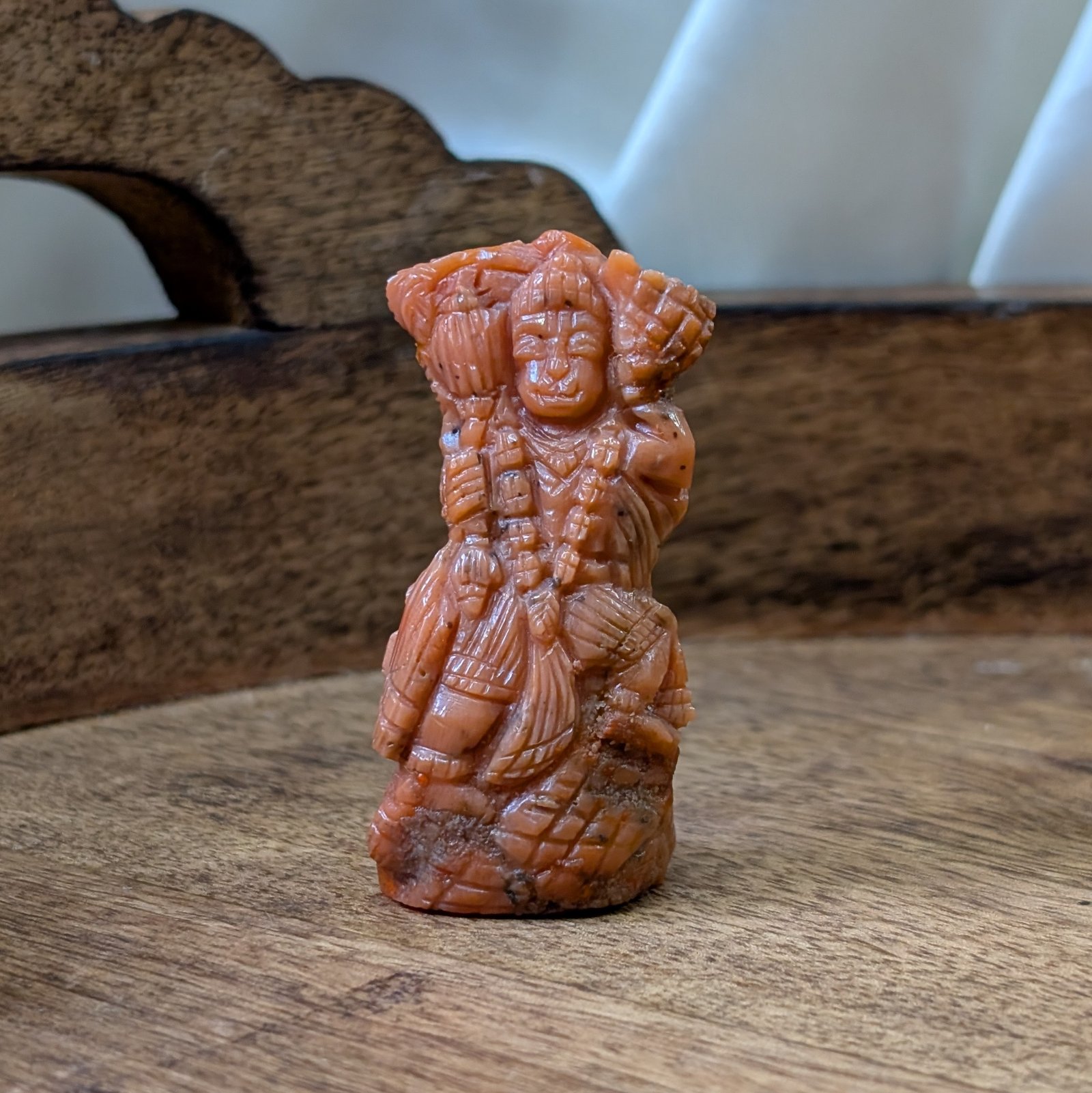 Hanuman, a central deity in Hindu mythology, is known for his immense strength, devotion, and courage, and is often depicted as a monkey god. When created from red coral, such idols are not only aesthetically beautiful but also believed to embody the positive energies associated with the coral. These include strength, vitality, and protection.