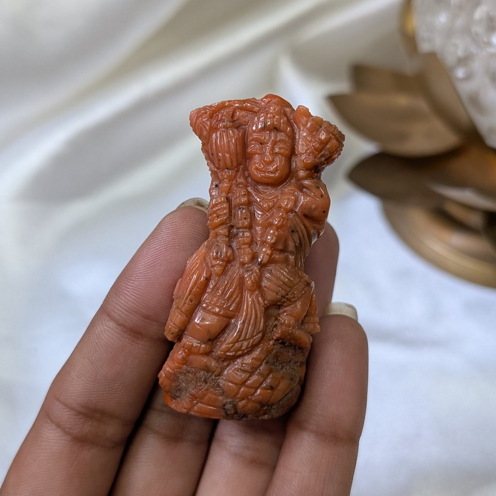 The use of coral in religious iconography is common in Hinduism, especially in the context of Lord Hanuman. Red coral is thought to aid in removing obstacles, enhancing physical strength, and offering protection against negative energies.