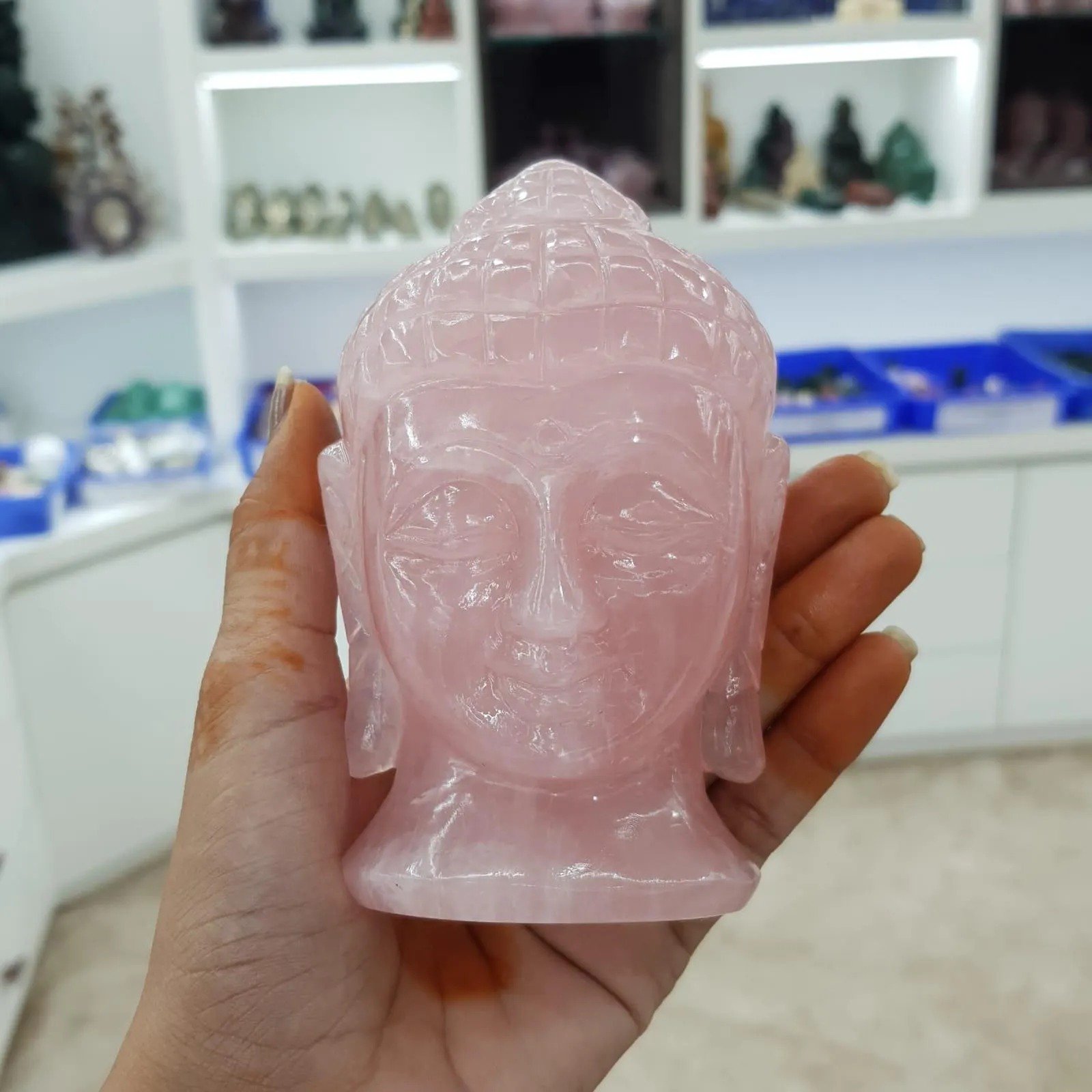 Rose Quartz Buddha Head – Meditation Décor Gifts
