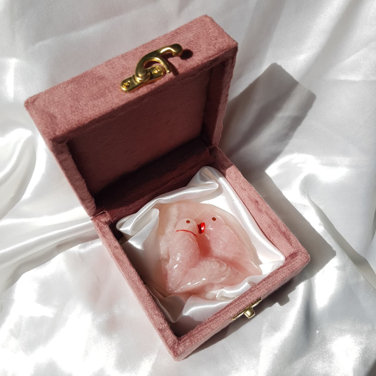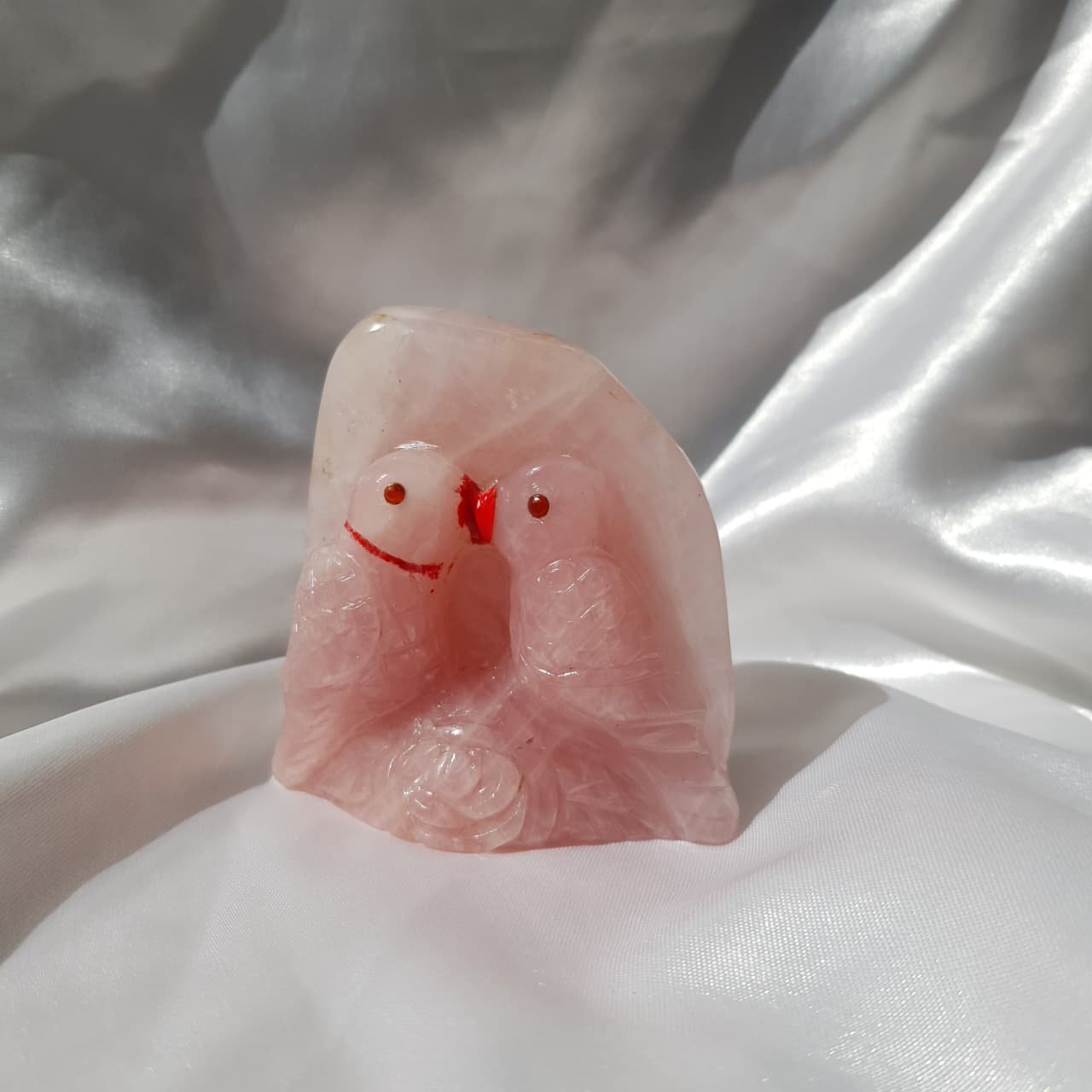 The Rose Quartz Parrot is a beautiful handmade home décor piece, weight 265 grams and measurement 3 inches tall, 3 inches wide, and 1.5 inches deep. Crafted from natural pink rose quartz, it adds a calming and loving vibe to any space. Perfect as a gift or a special accent for your home, it comes securely packed in a velvet box with bubble wrap for safe delivery. Easy to care for, simply wipe with a soft cloth to keep it shiny and beautiful. This handcrafted crystal pet makes a meaningful gift for loved ones or a lovely personal décor item.