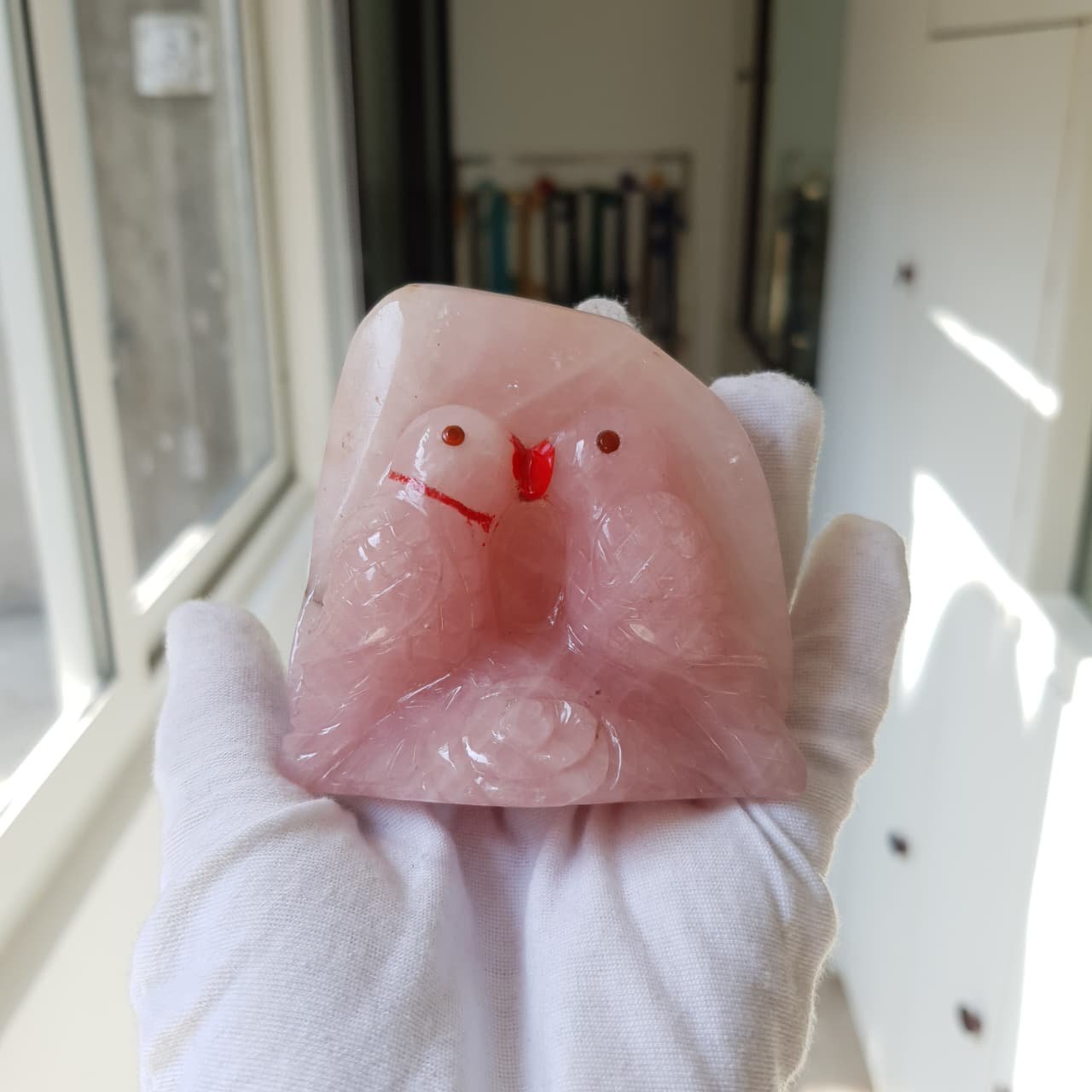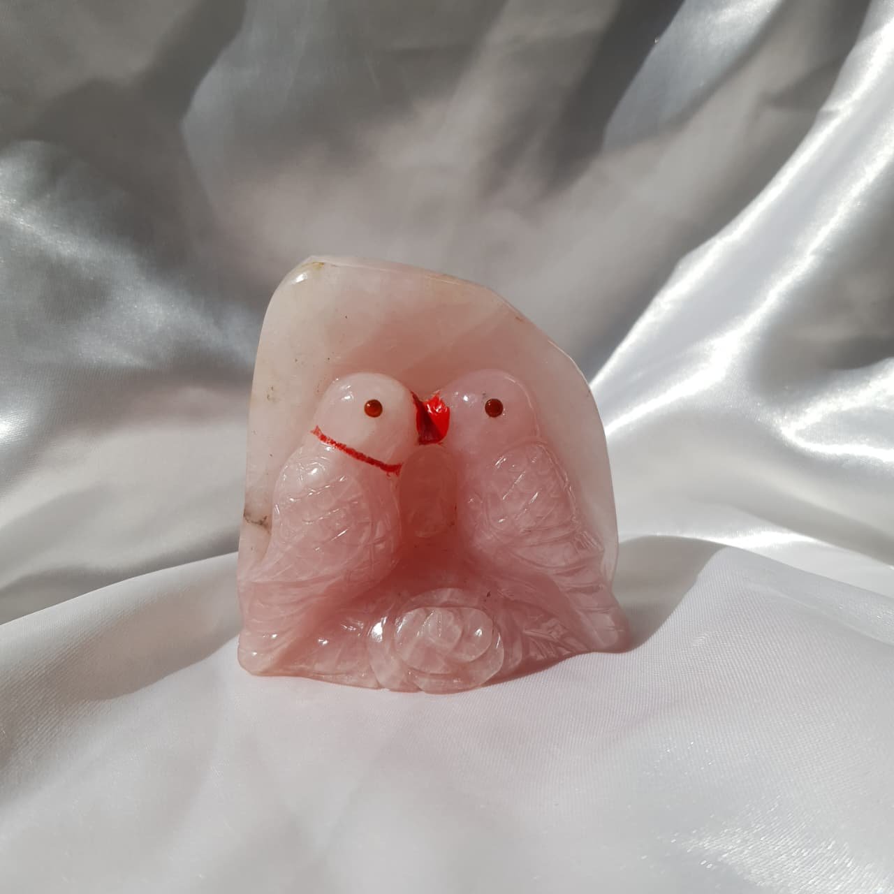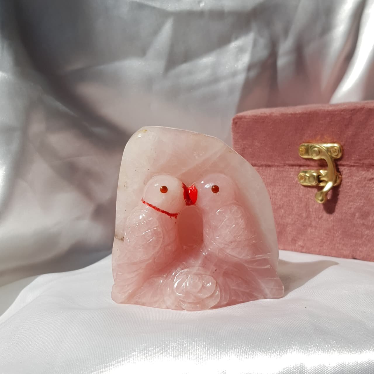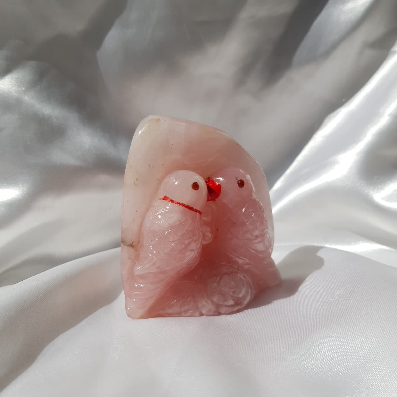 Rose Quartz Parrot Carving, Handmade Crystal Love Birds Home Décor