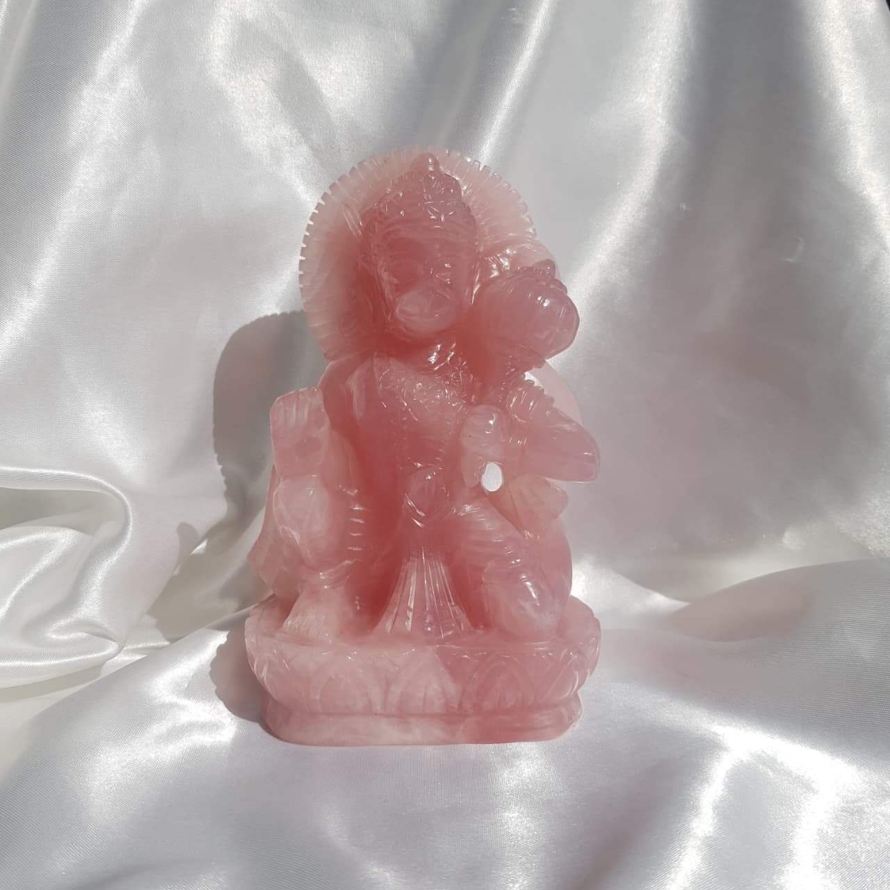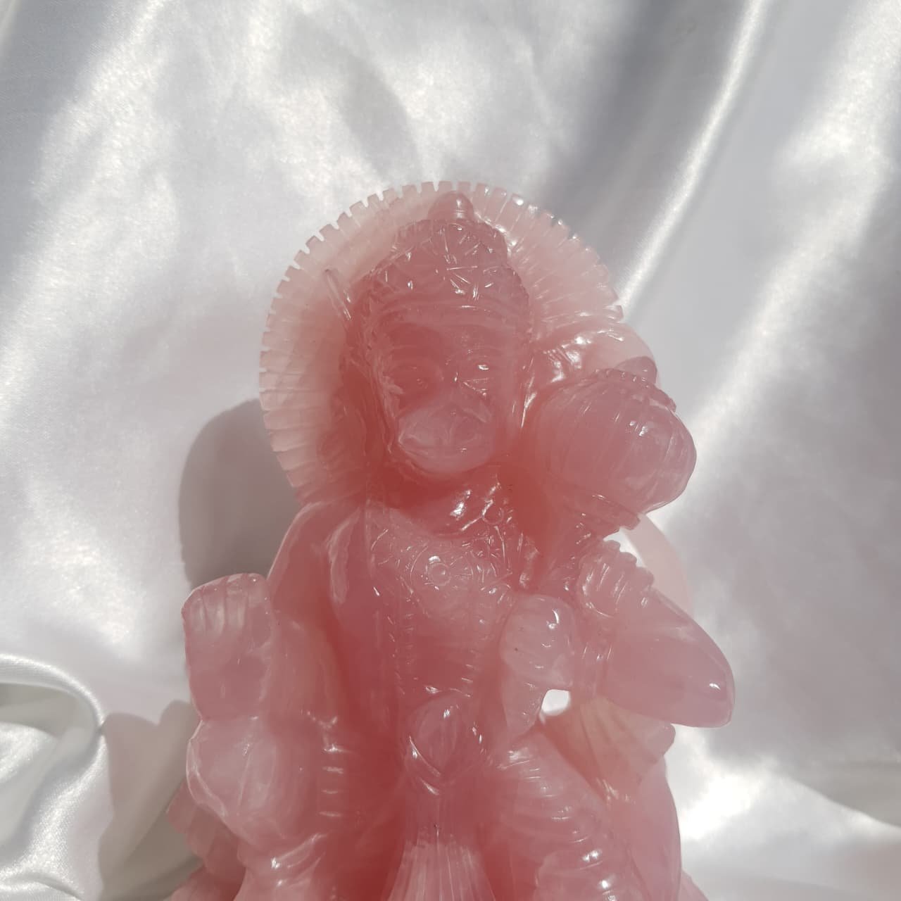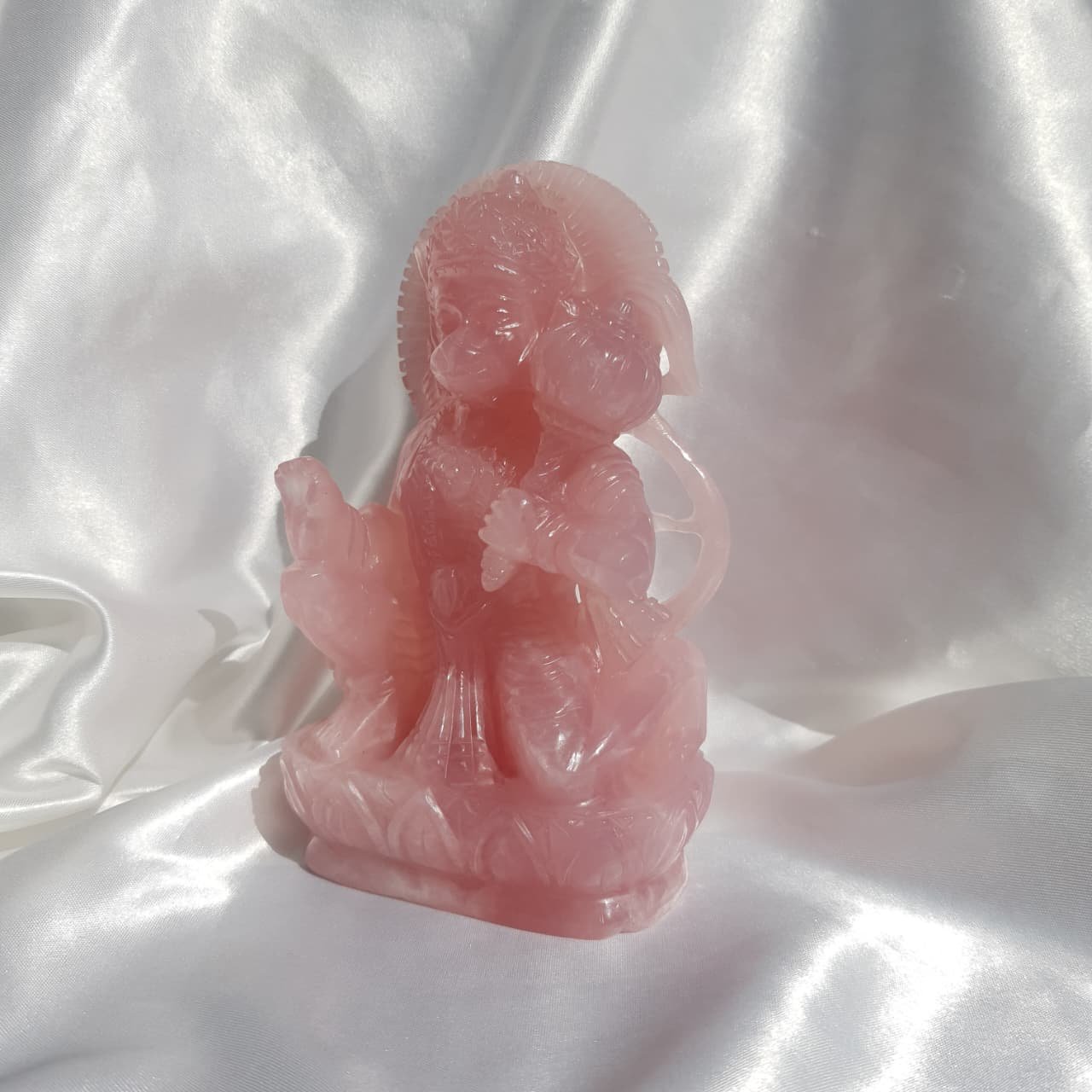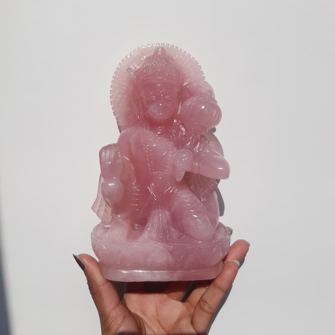 Rose Quartz Stone Hanuman Statue, Hand Carved Lord Hanuman ji murti