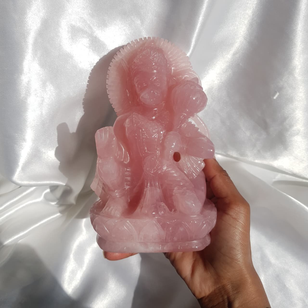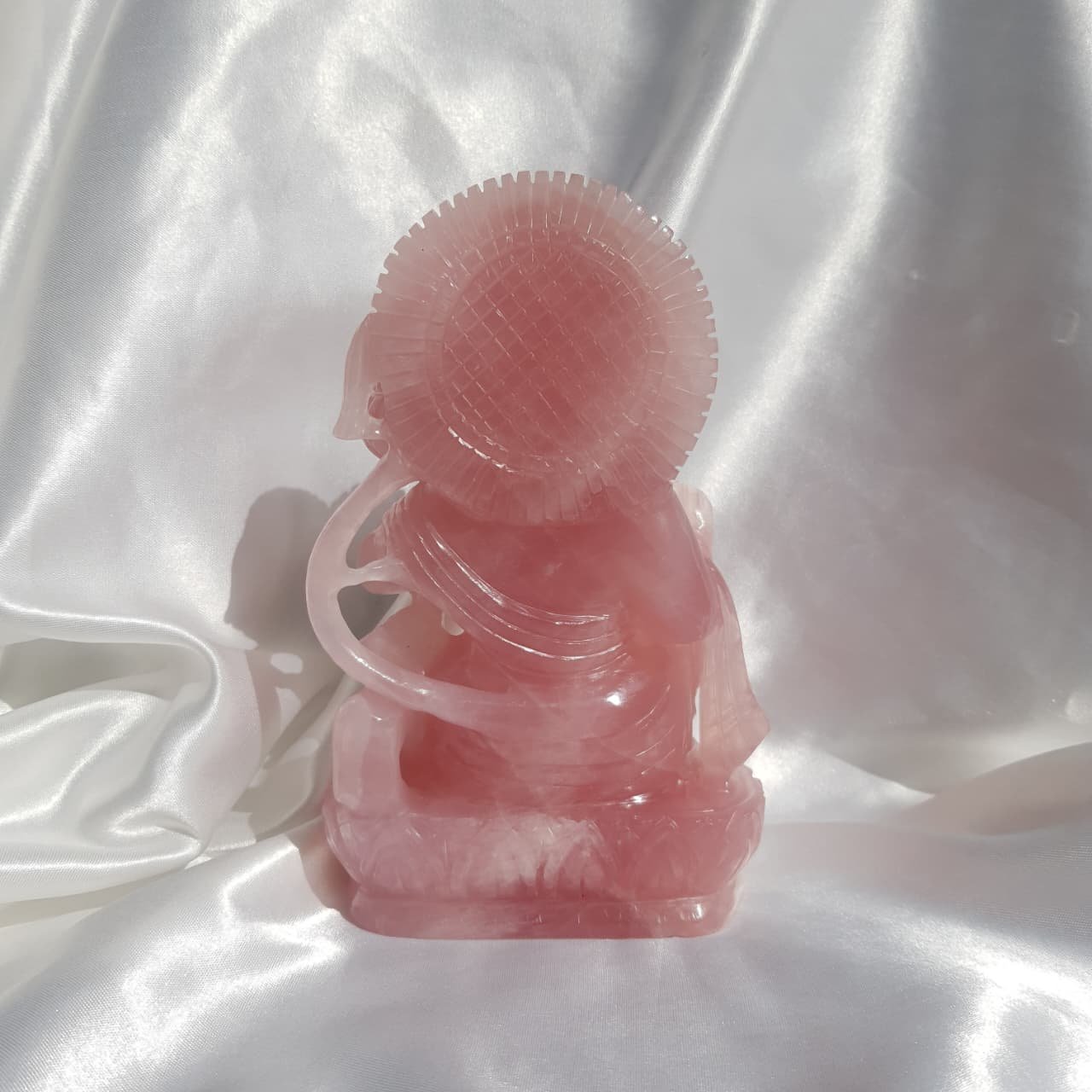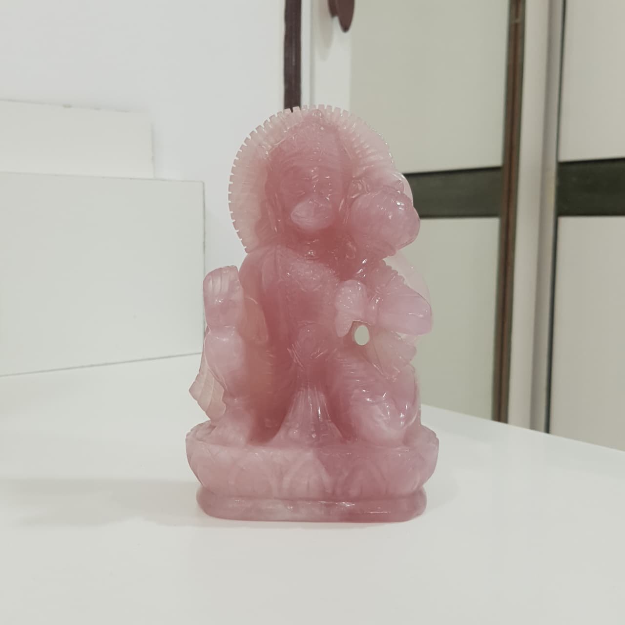 Rose Quartz is known for promoting peace, emotional healing, harmony, and compassion, while Lord Hanuman symbolizes courage, protection, devotion, and removal of fear. Together, they create a powerful spiritual presence for your home, office, or meditation space.